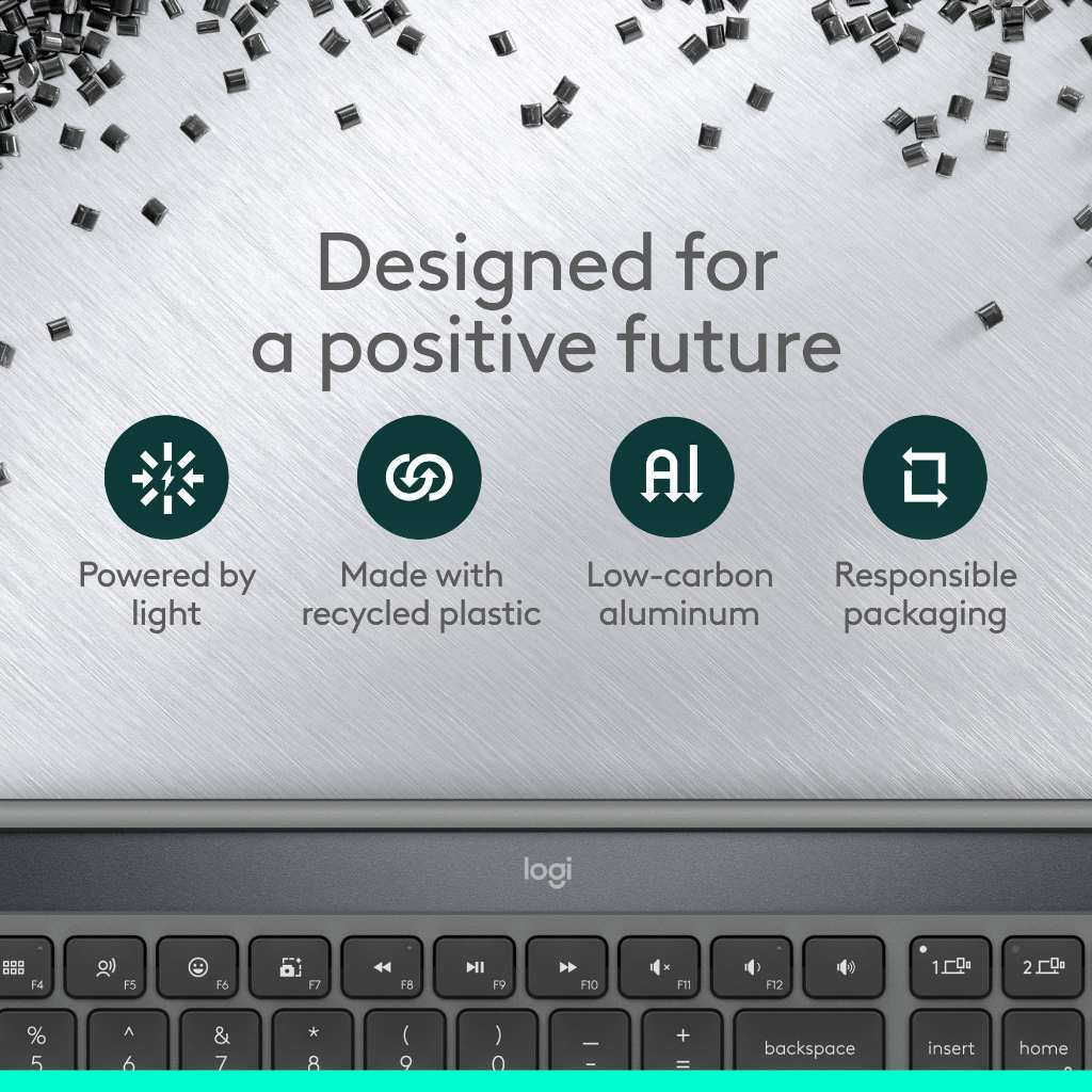 Logitech Signature Slim Solar+ wireless keyboard, solar and artificial light powered, customizable keys, Bluetooth