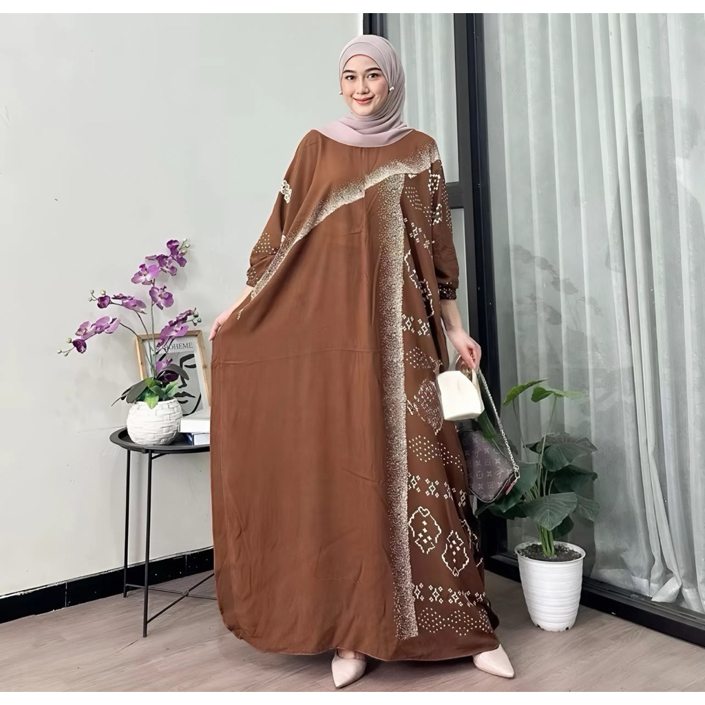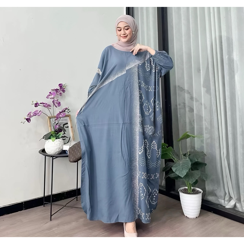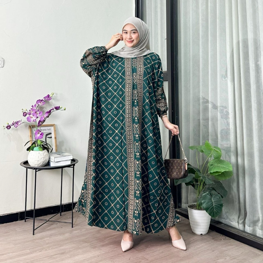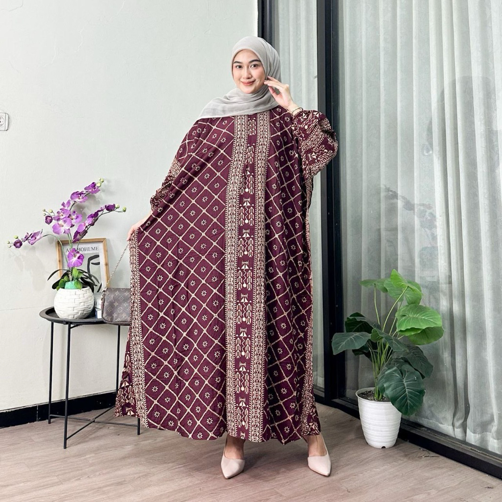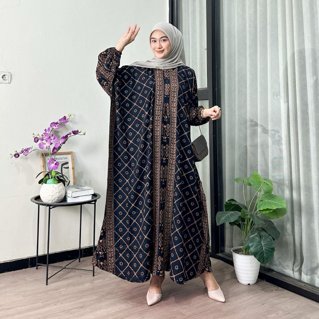 Jumbo XXXXL Women's Kaftan - Ayunda Jumbo Maxi Kaftan Batik Motif Long Sleeves Nursing Zipper Jumbo Rayon Gamis Latest Kaftan