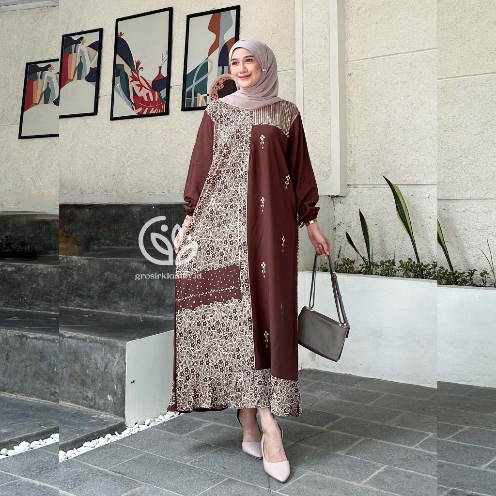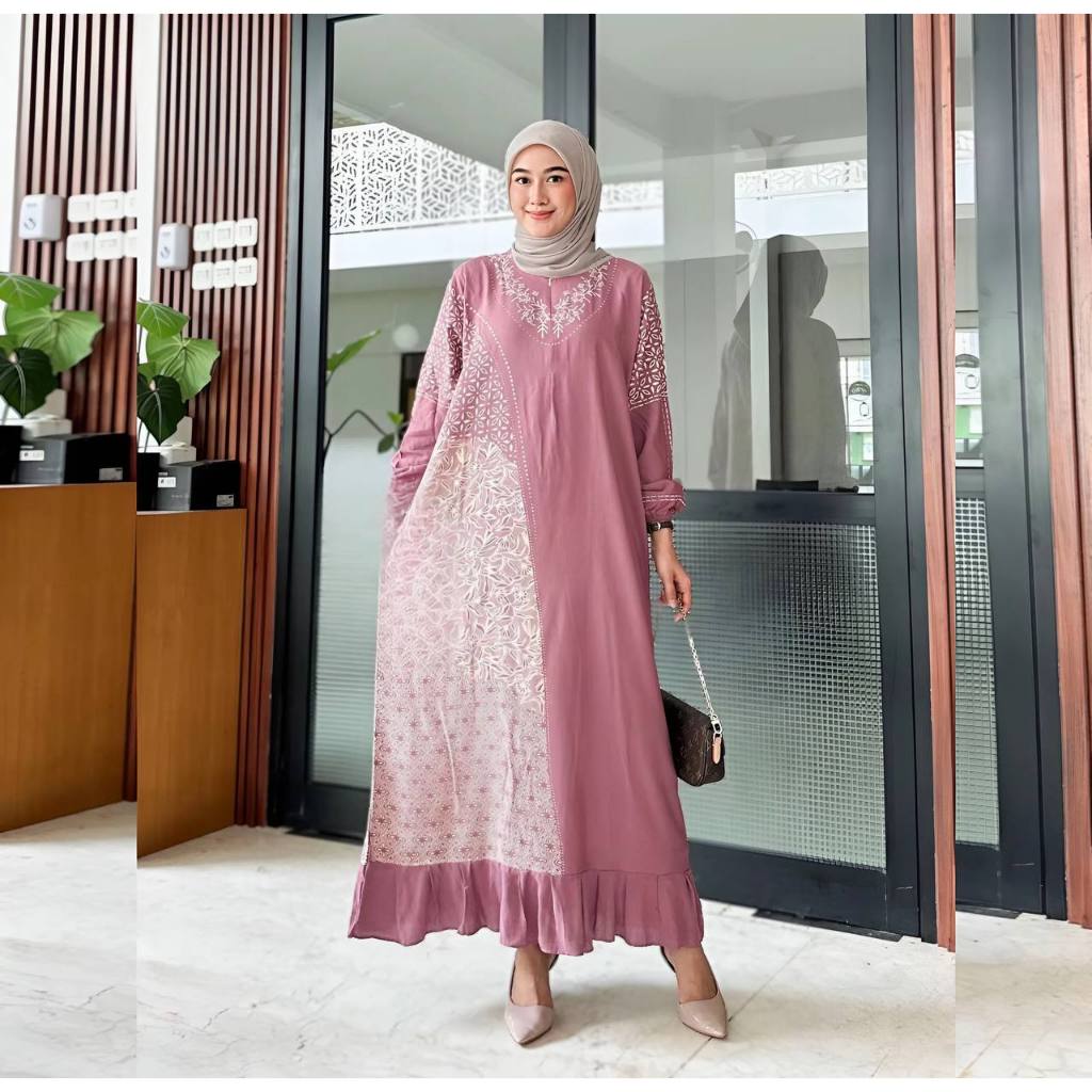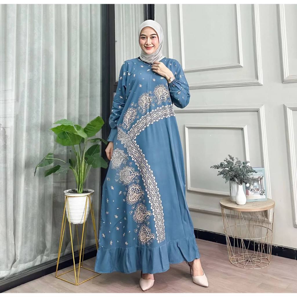 Lesti Dress Rayon Rempel Busui Long Sleeve Homedress Batik Cool Thick Comfortable