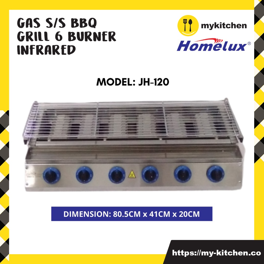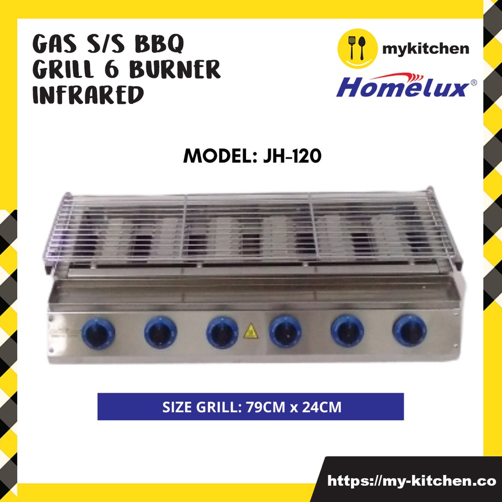 [MY KITCHEN] Homelux JH-120 Gas BBQ Grill 6 Burners Infrared Full Stainless Steel Body Dapur Extra Bubblewrap Free Gift