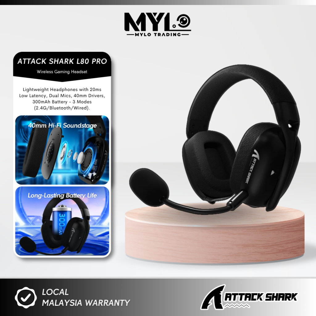 Attack Shark L80 PRO Wireless Gaming Headset – Tri-Mode (Bluetooth + 2.4G + Wired) Lightweight Over-Ear Headphones