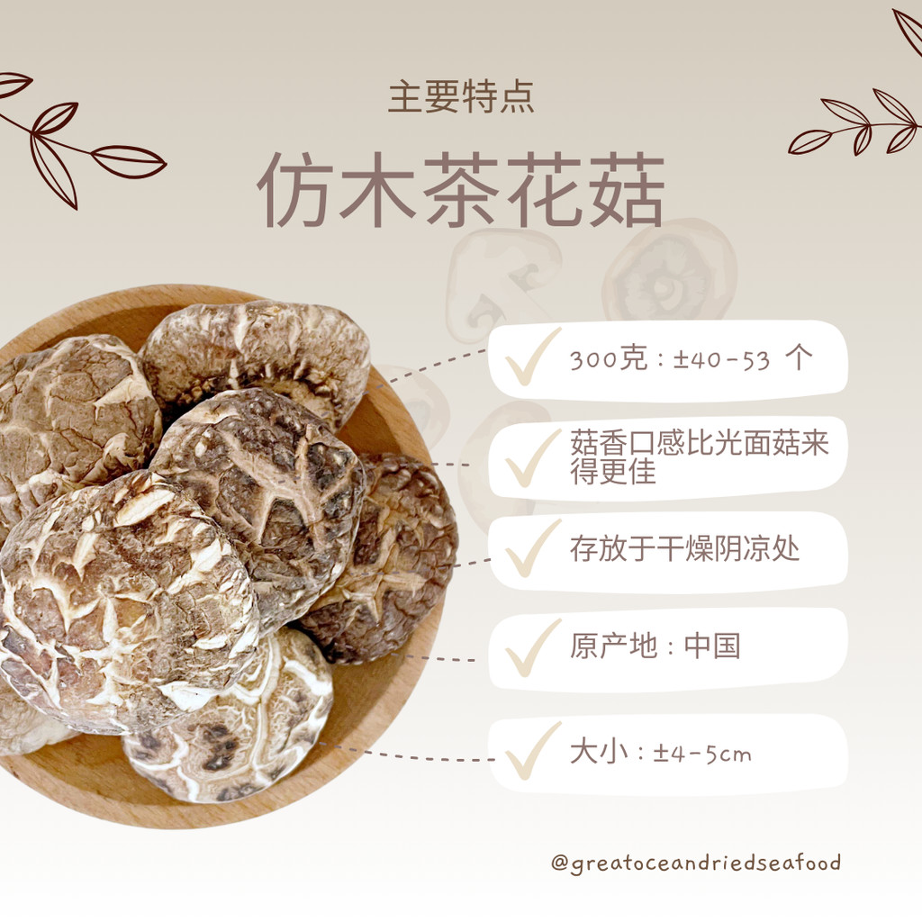 [300g] Great Ocean Tea Flower Dried Mushroom | 仿木茶花菇AA级