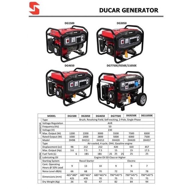 DUCAR DG11050E GENERATOR 7500W 17.5HP (4 STROKE)