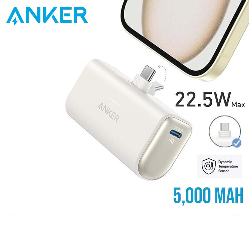 Anker A1653 Nano Power Bank with Built-in Foldable USB-C Connector, 5,000mAh Portable Charger 22.5W, for lPhone 15