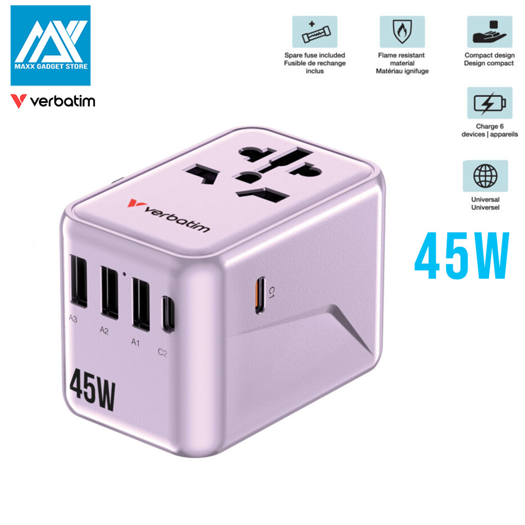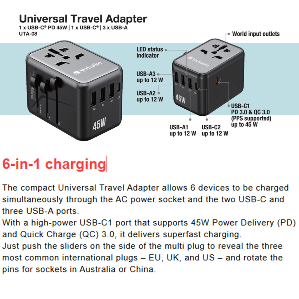 Verbatim UTA-08 5 Port PD 3.0 45W Travel Adapter