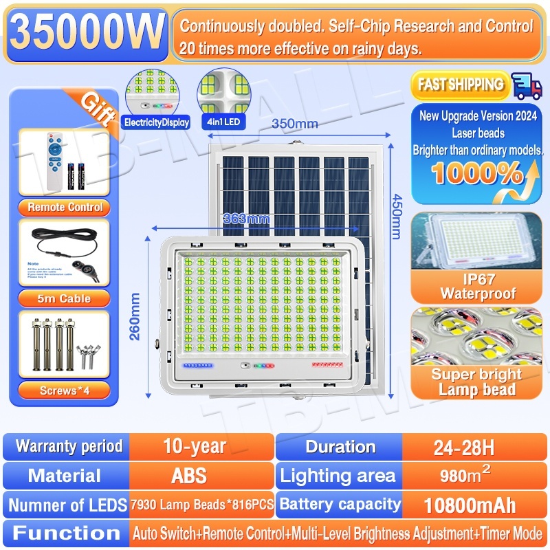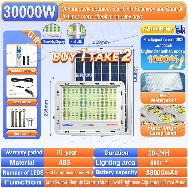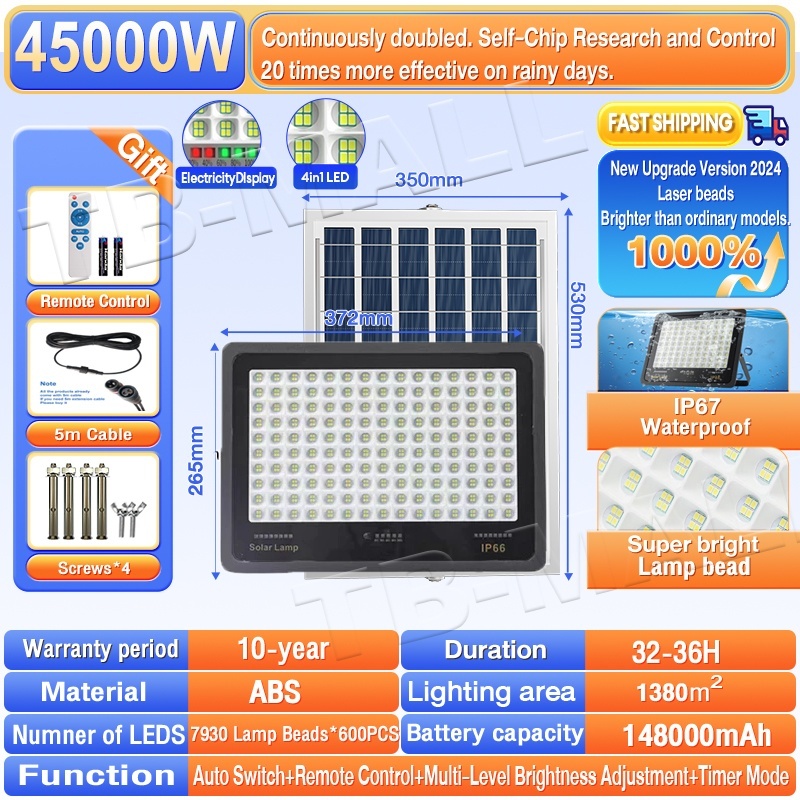 【30-Year warrany】Lampu solar light outdoor lighting 80000W Solar Spotlight IP68 Waterproof solar LED Street light