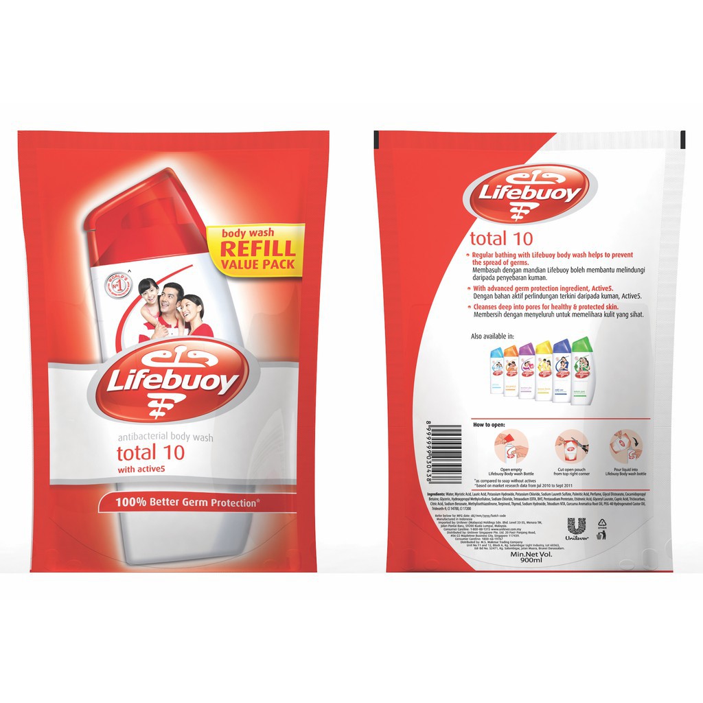 Lifebuoy Total 10 Antibacterial Shower Gel Refill 850ml
