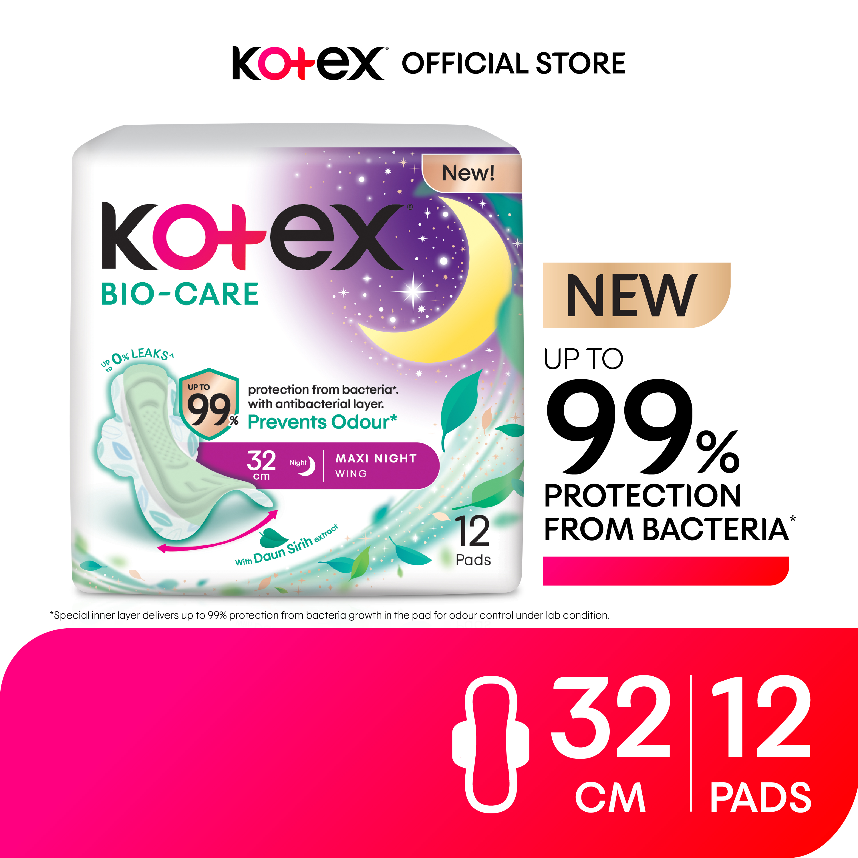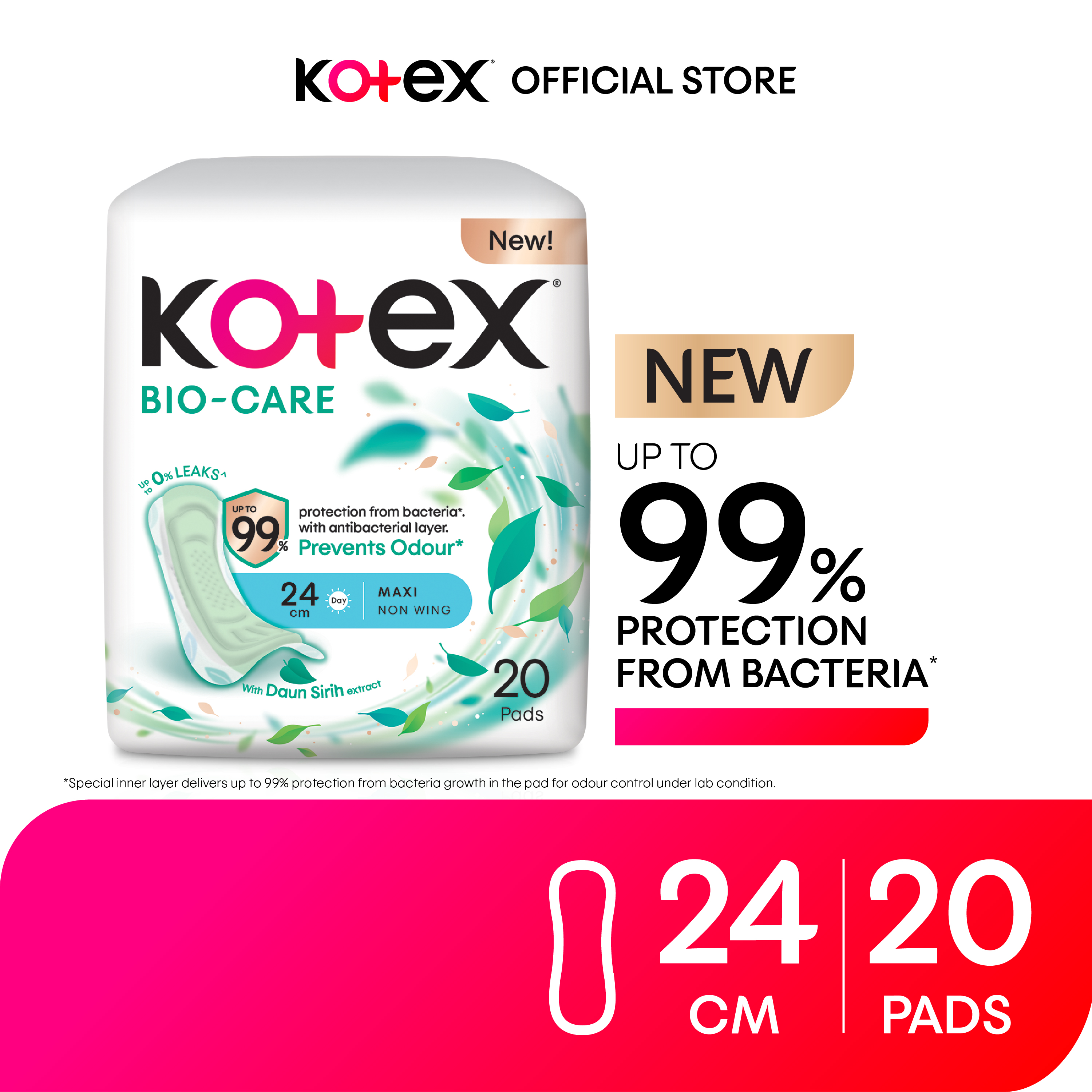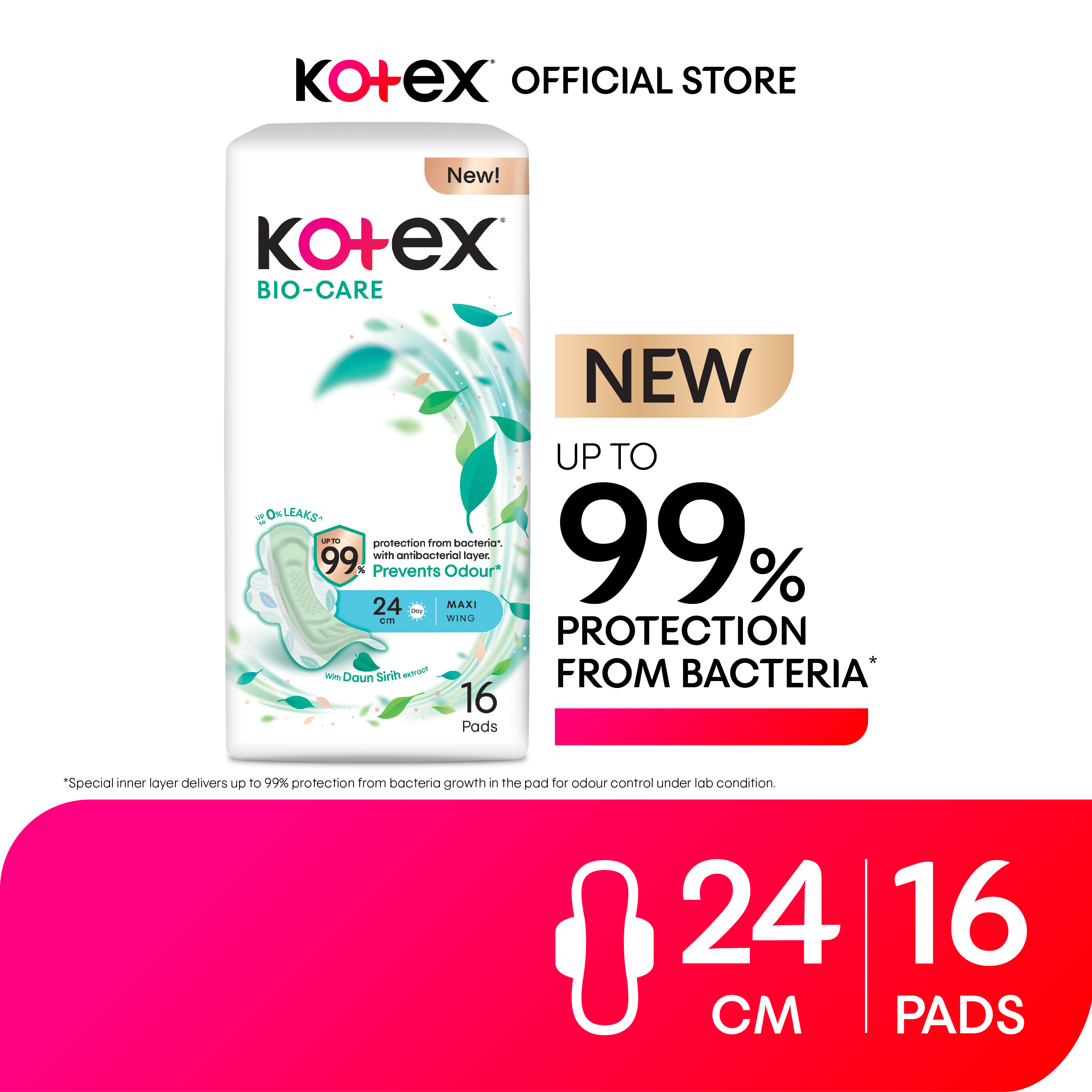 Kotex Biocare Pad (Maxi 24cm/ Overnight 32cm) - Sanitary Pad with Odor Care