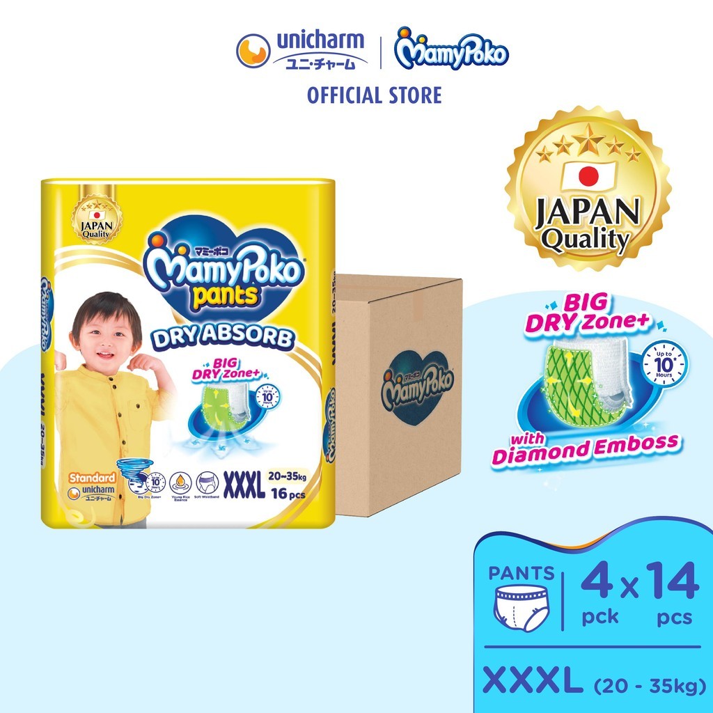 MamyPoko Standard Dry Absorb Pants Baby Diapers M60/ L48/ XL40/ XXL32+2/ XXXL16 (Carton)