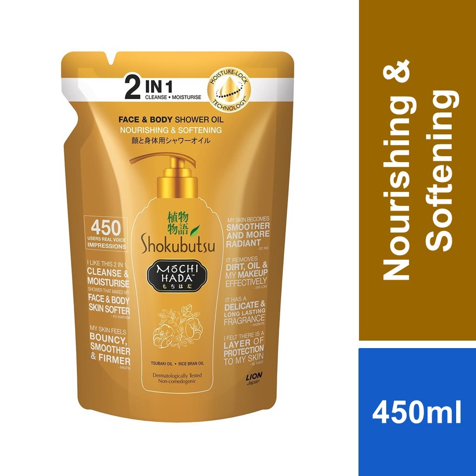 Shokubutsu Mochi Hada Shower Oil - Nourishing & Softening Refill Pack 450ml