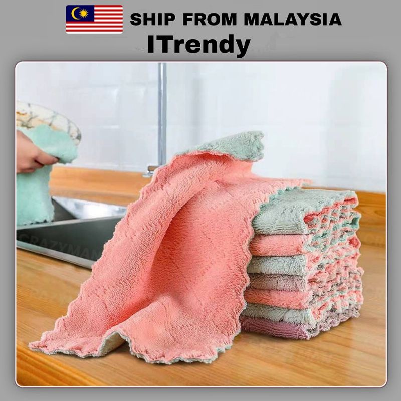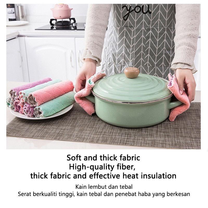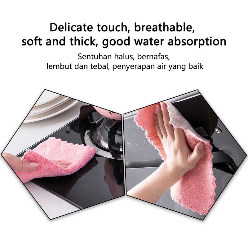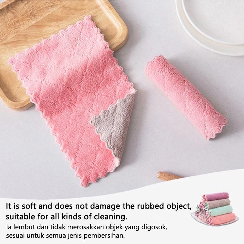 Kitchen Towel | Rag Kain Dapur | Non-stick Oil Double-layer Dish Washing Cloth Kitchen Cleaning Wipes Cloth 27x16cm