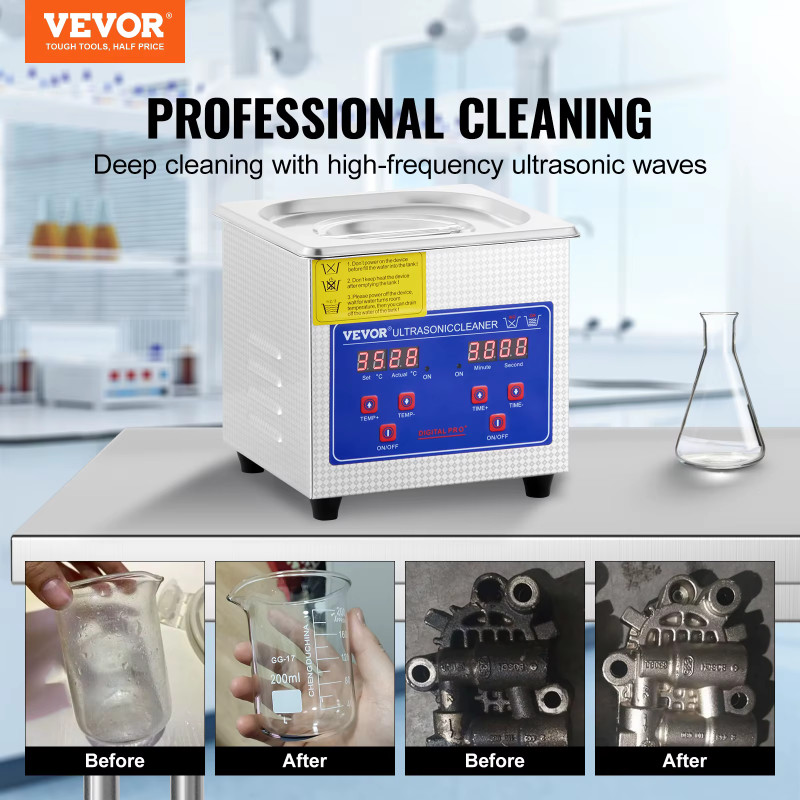 VEVOR 1.3L Ultrasonic Cleaner Machine Stainless Steel Ultrasonic Cleaning Machine Digital Heater Timer Jewelry Cleaning