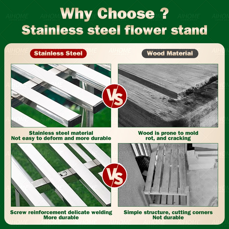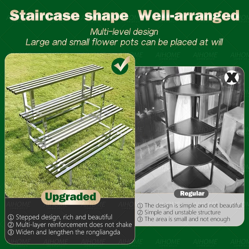 Rak Bunga Bertingkat Rak Pasu Bunga Outdoor Stainless Steel Flower Rack Pots & Planters Rak Pokok Bunga Outdoor