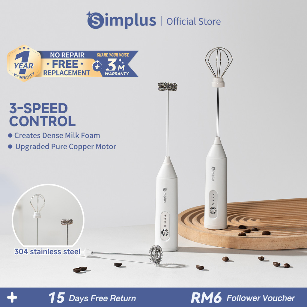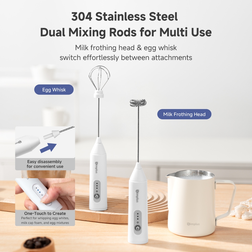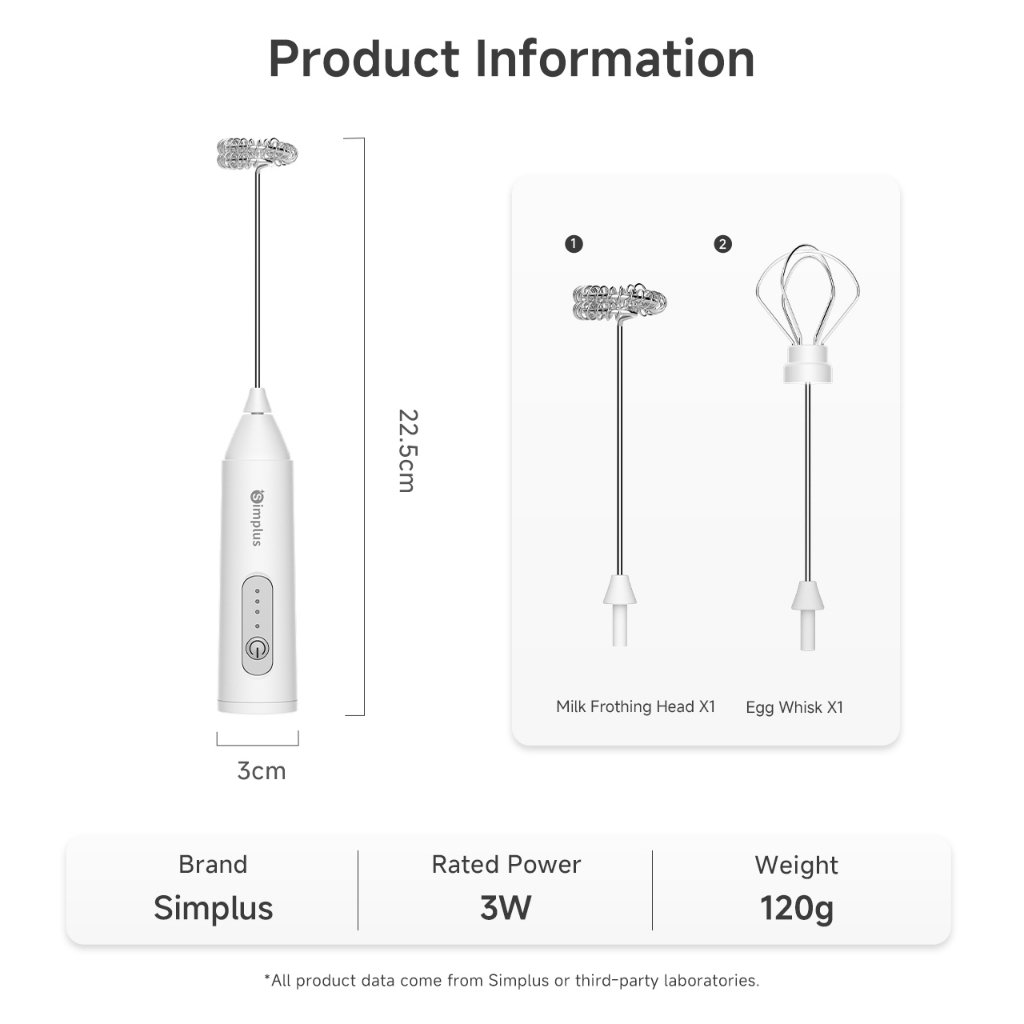 【New Launch】Simplus Wireless Electric Milk Frother & Egg Whisk丨Long-Lasting Battery丨304 Stainless Steel丨3 Speeds NPQH001