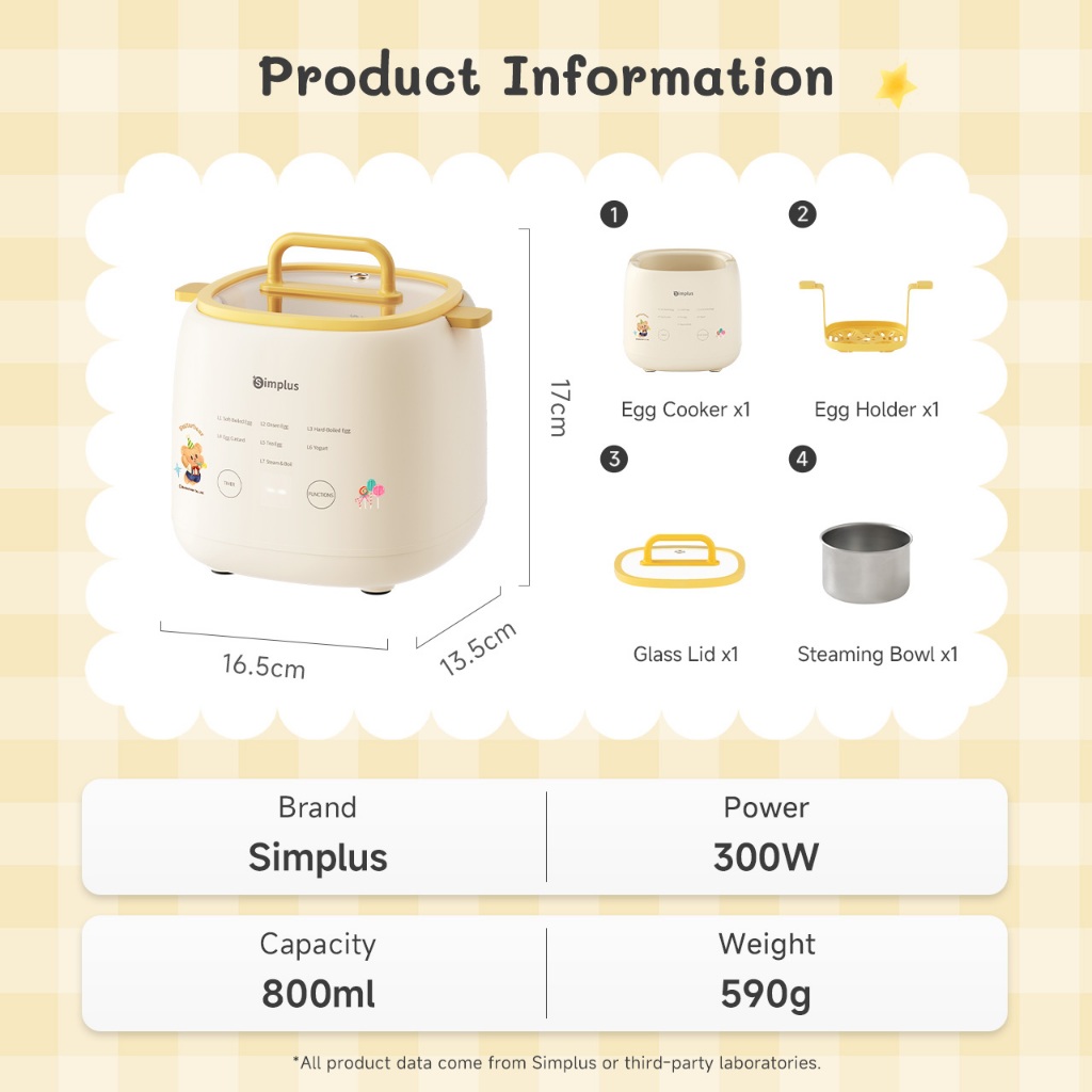 Simplus Multifunctional Egg Cooker |7 Modes | 24h Reservation | SUS304 Steaming Bowl | Steaming Egg Custard Yogu DZEG006