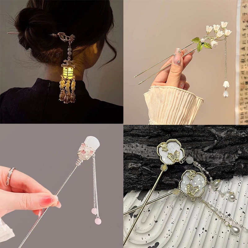 New Chinese Style Metal Hairpin Antique Style Tassel Step Shaking High-End Hairpin Cheongsam Hanfu Daily Coil Hairpin Headdress