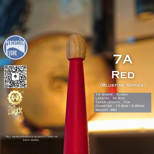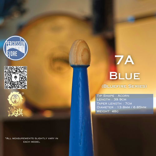 Hanflag Bluefire 7A Hickory Drumsticks (Natural/Red/Black/Blue)