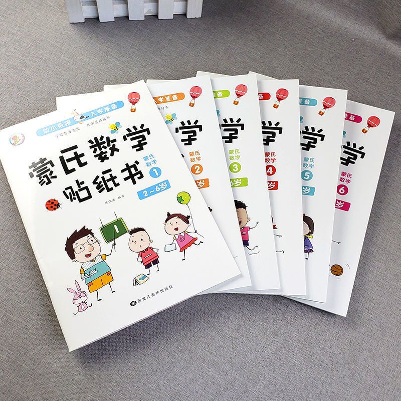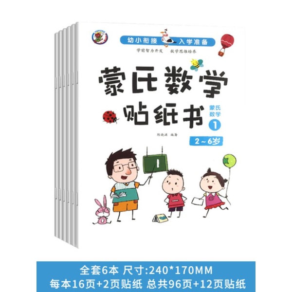 1套6本 数学贴纸书 儿童益智早教蒙氏 Kids Early Learning Sticker Books 幼儿学前识字启蒙书