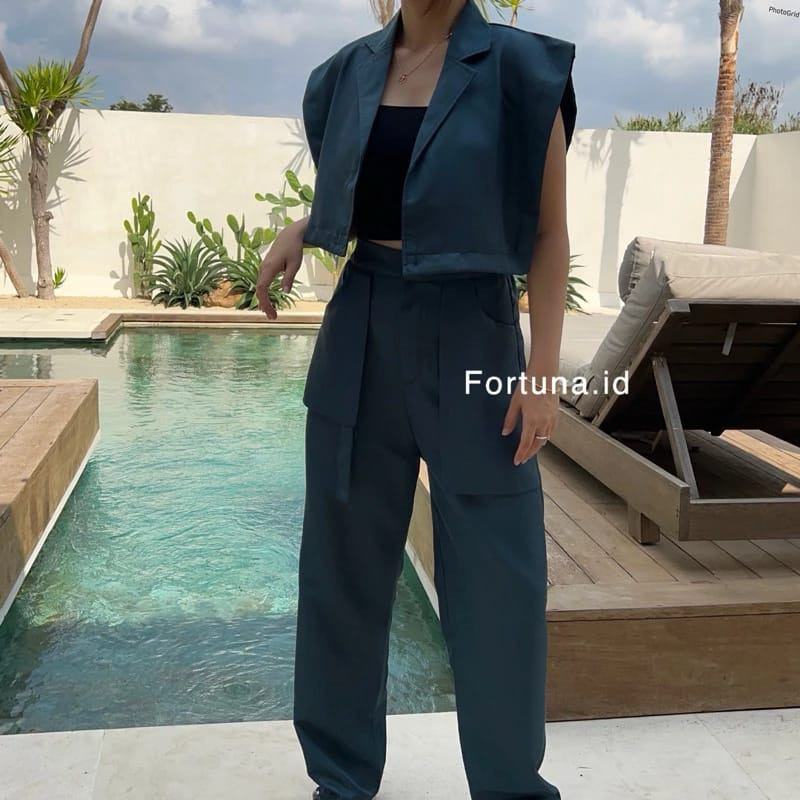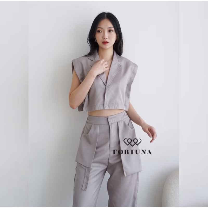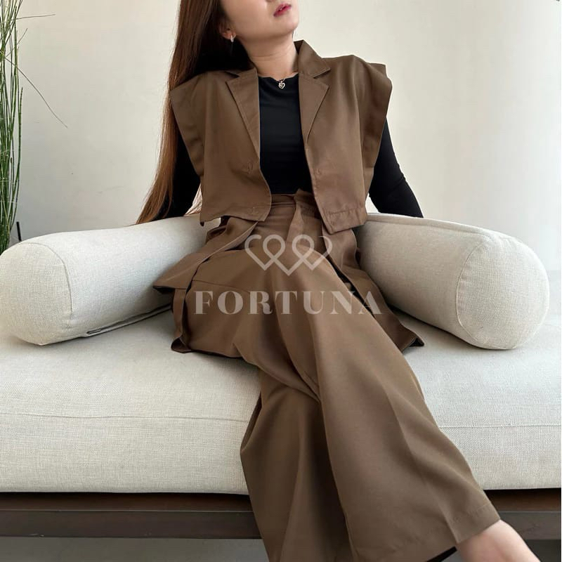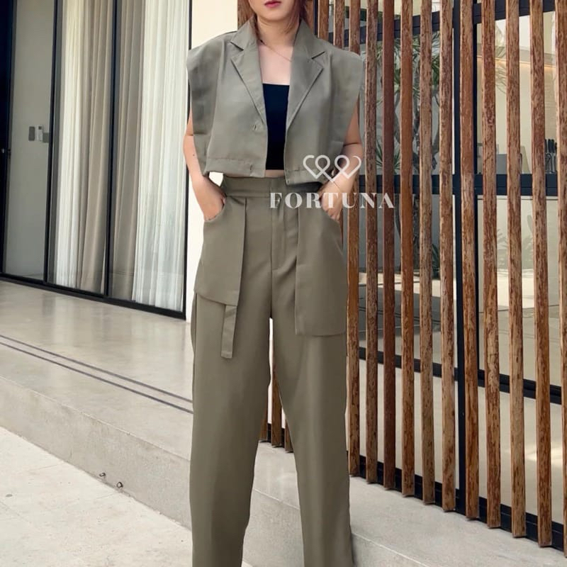 EMMA Set Fortuna by Fortuna (Fuji Choice) Vest One Set Trendy Top and Pants One Set Women Outfit
