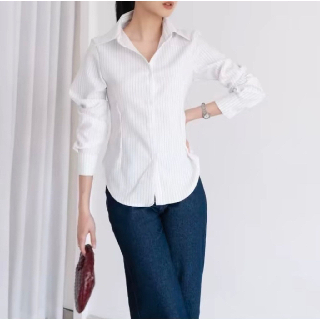 KEMEJA LIMITED - Seline Wispie Stripe Fit Body Blouse Shirt for Women | WOMEN'S OFFICE SHIRTS Blouse Women