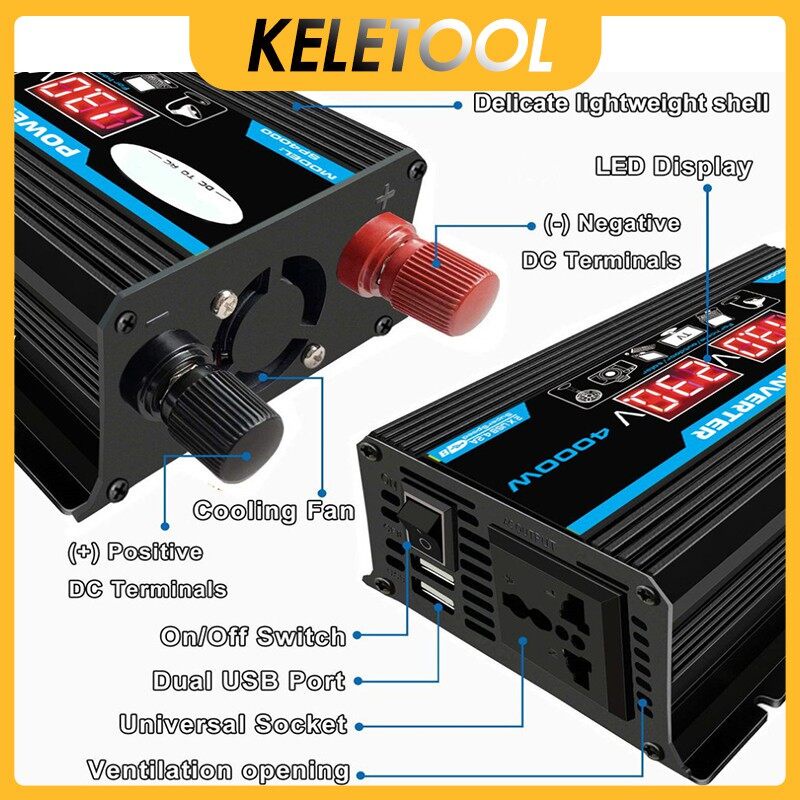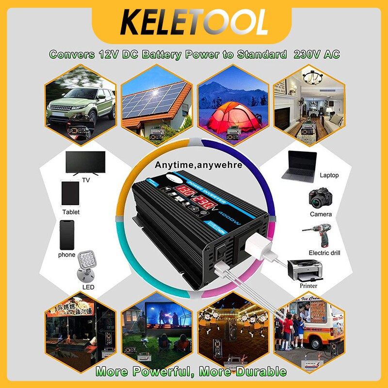 4000W DC 12V To AC 110/220V Power Inverter Charger Converter Adapter Universal Socket Car Inverter Sine Wave Converter