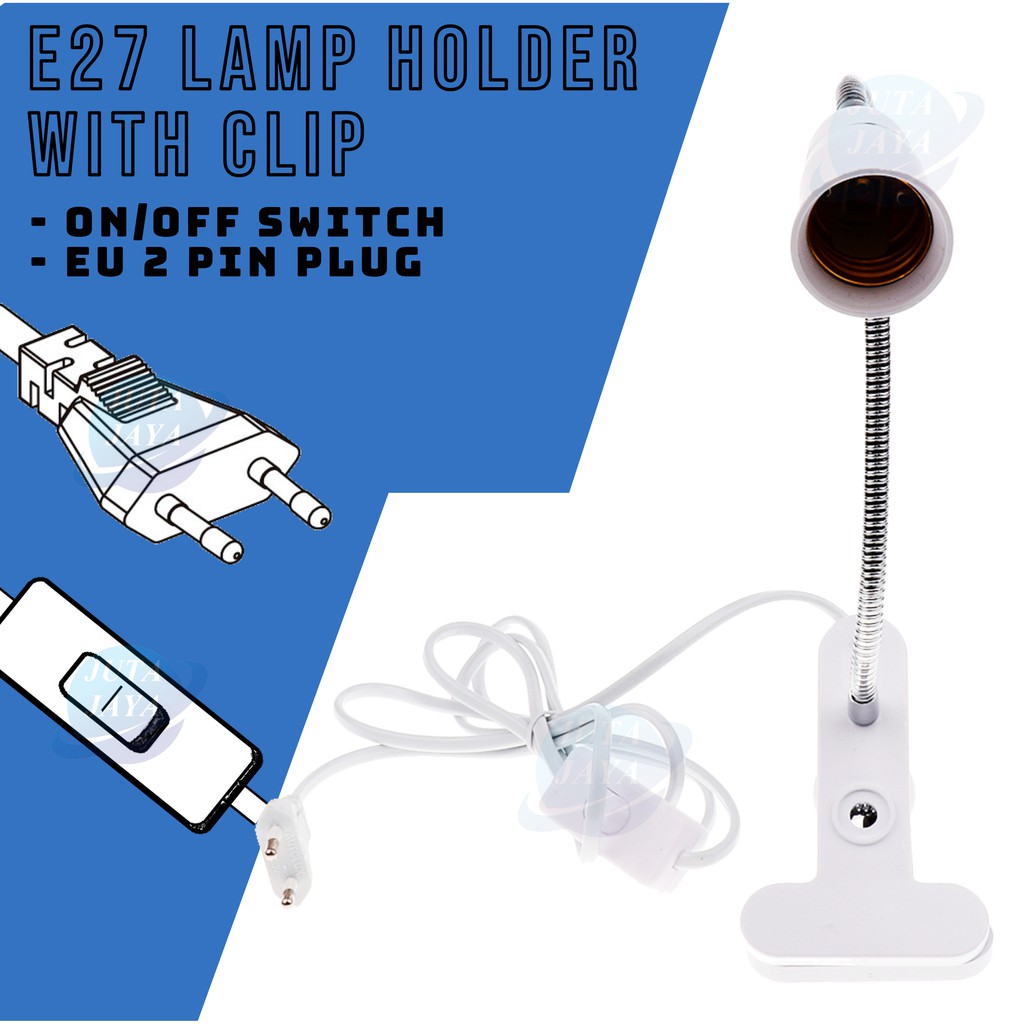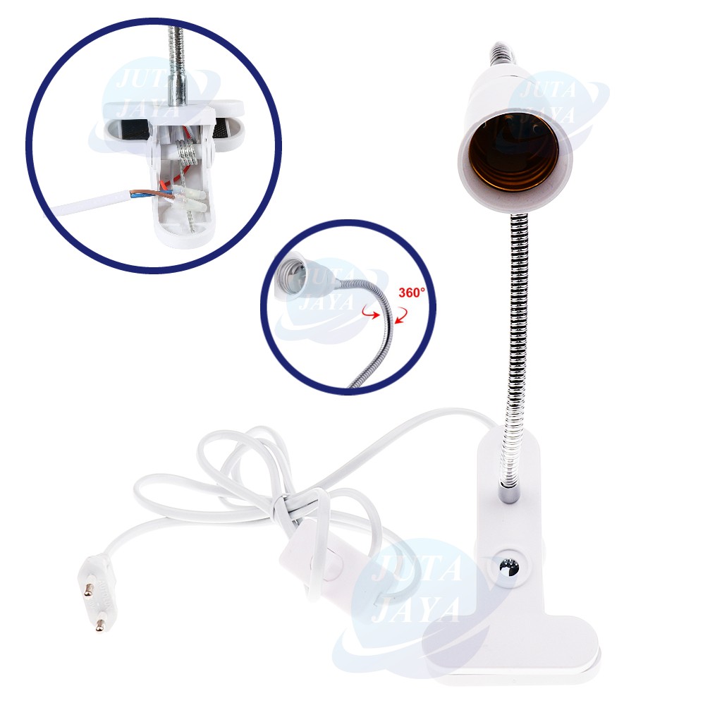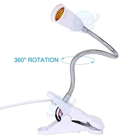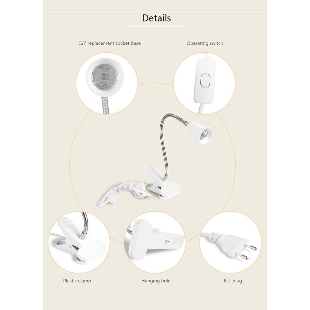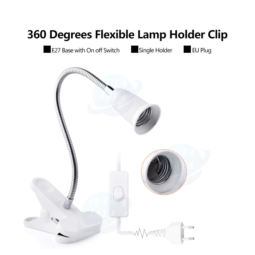 360 Degrees Flexible Adjustable E27 Light Bulb Base Lamp Holder Clip with ON OFF Switch Desk Table Lamp