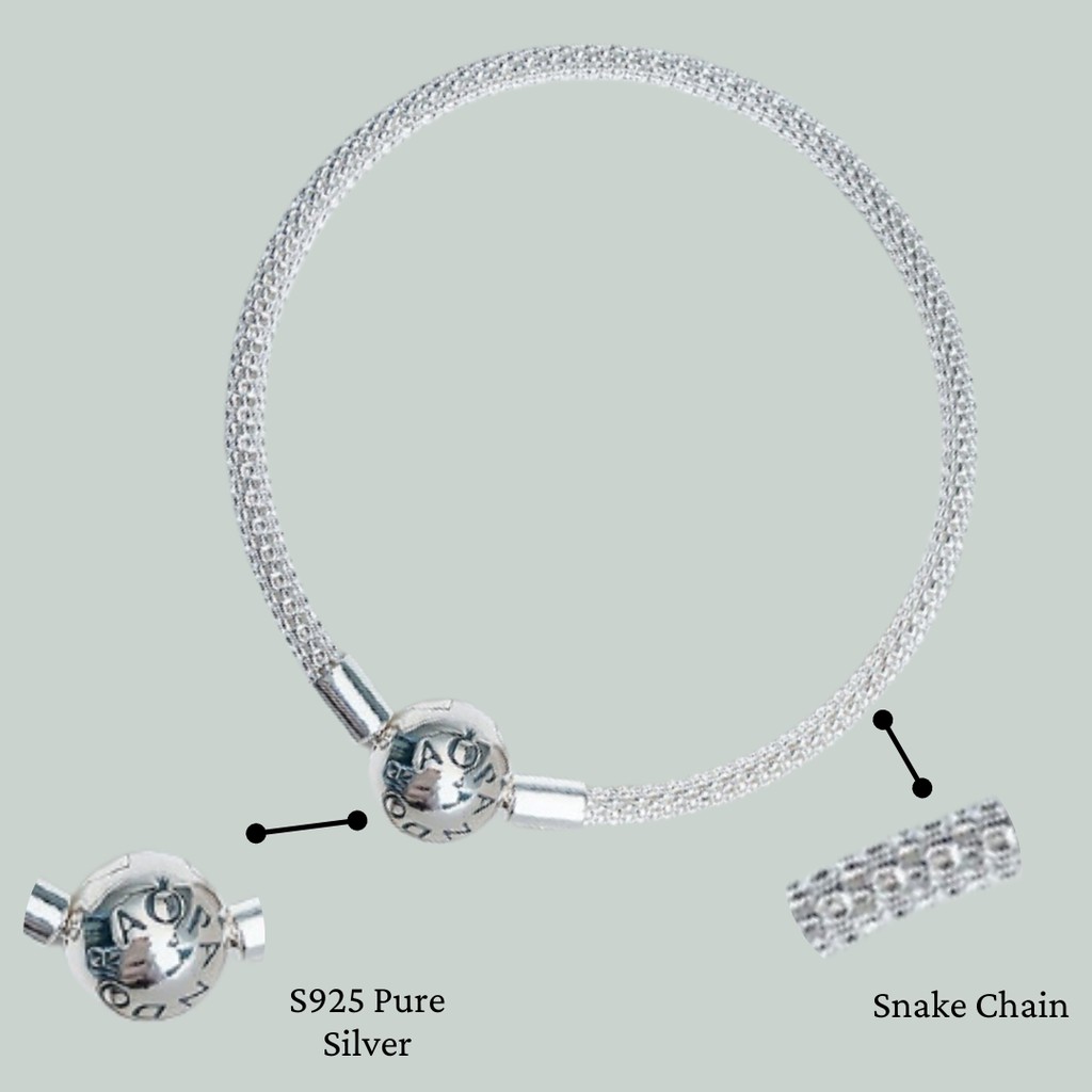 Sterling 925 Silver Snake Chain Pandora Silver Charm Bracelet