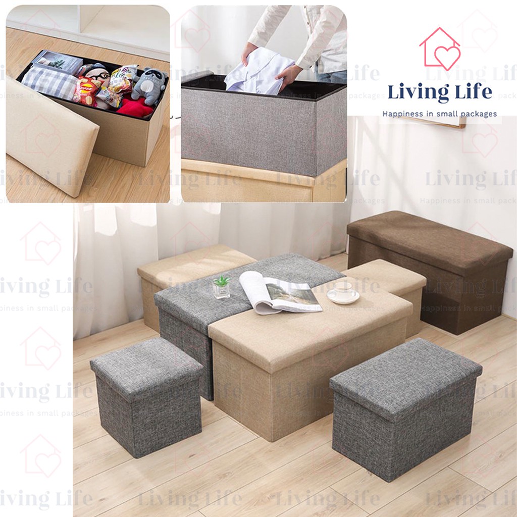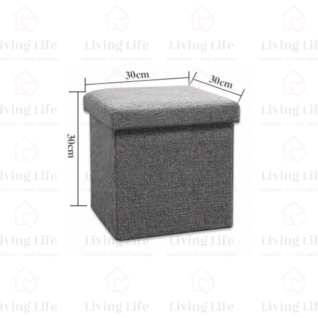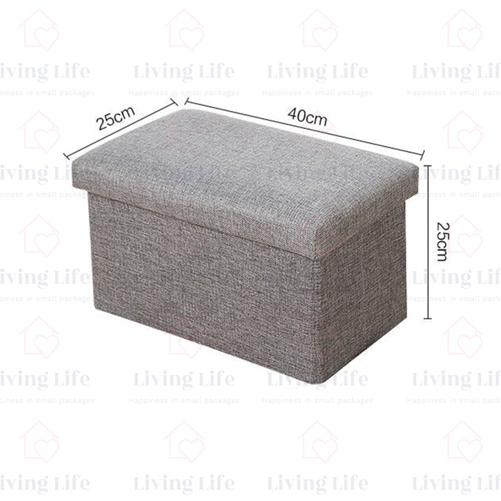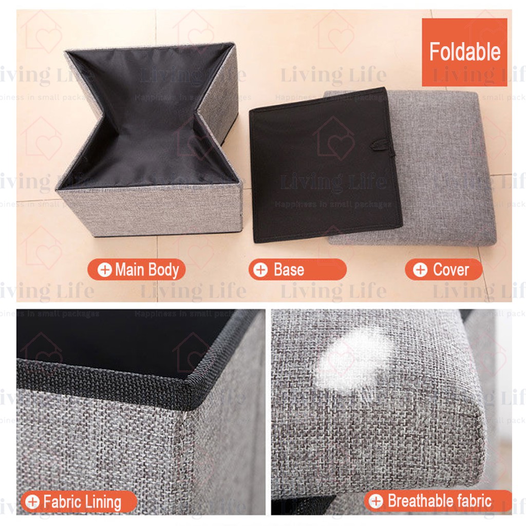 Living Life Foldable Storage Box Ottoman Fabric Foot Stool Seat Footrest Folding Storage Organizer