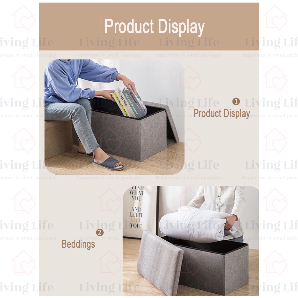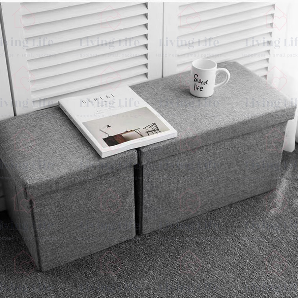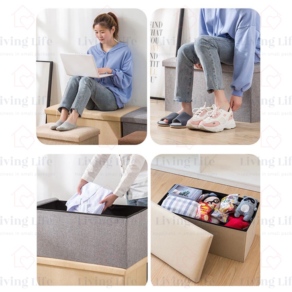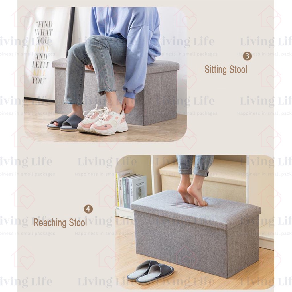 Living Life Foldable Storage Box Ottoman Fabric Foot Stool Seat Footrest Folding Storage Organizer