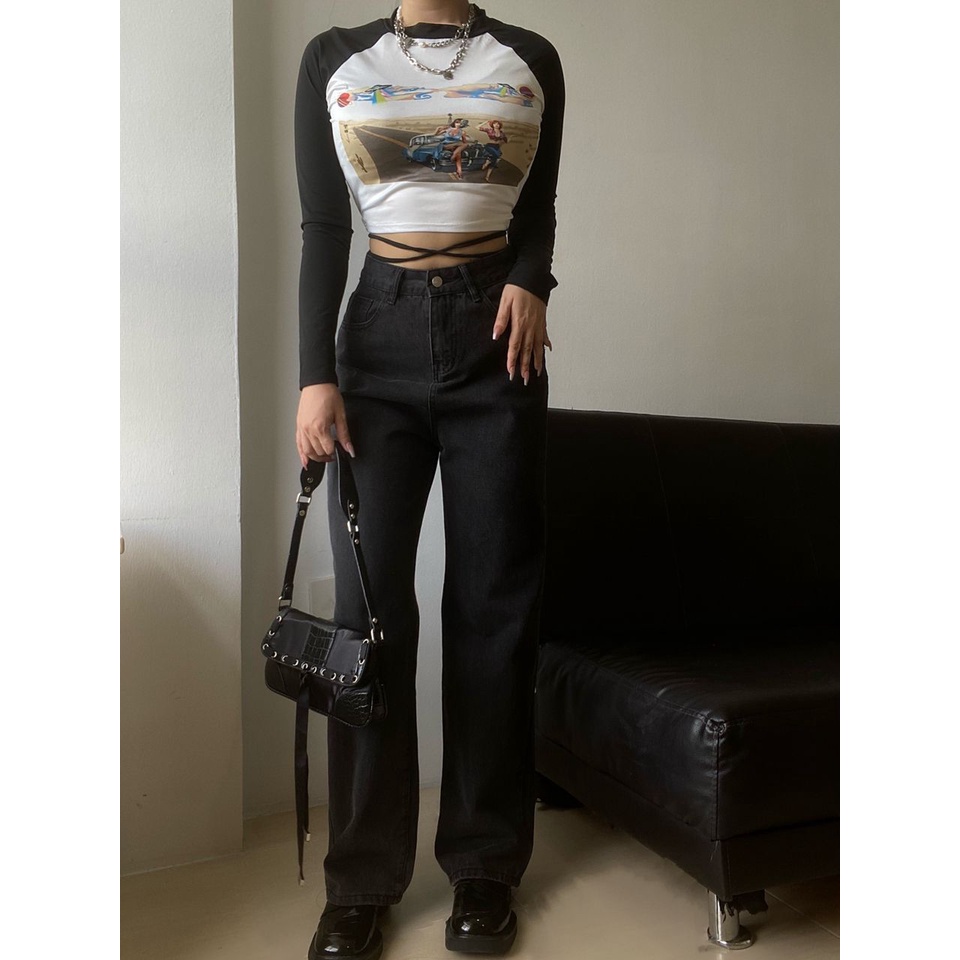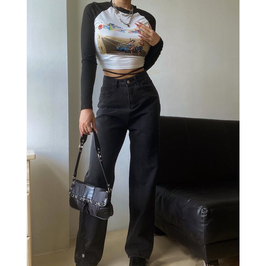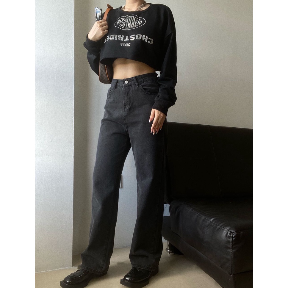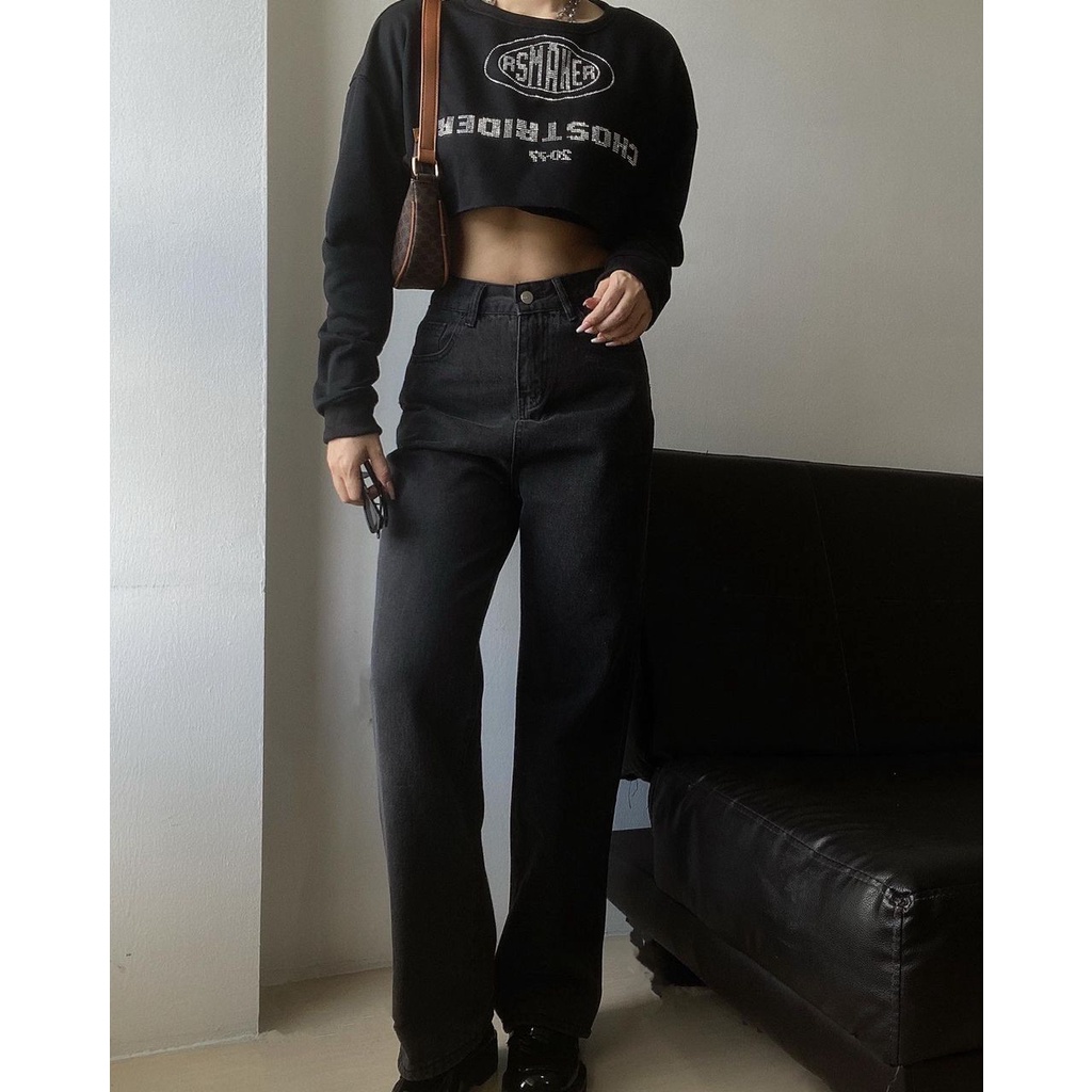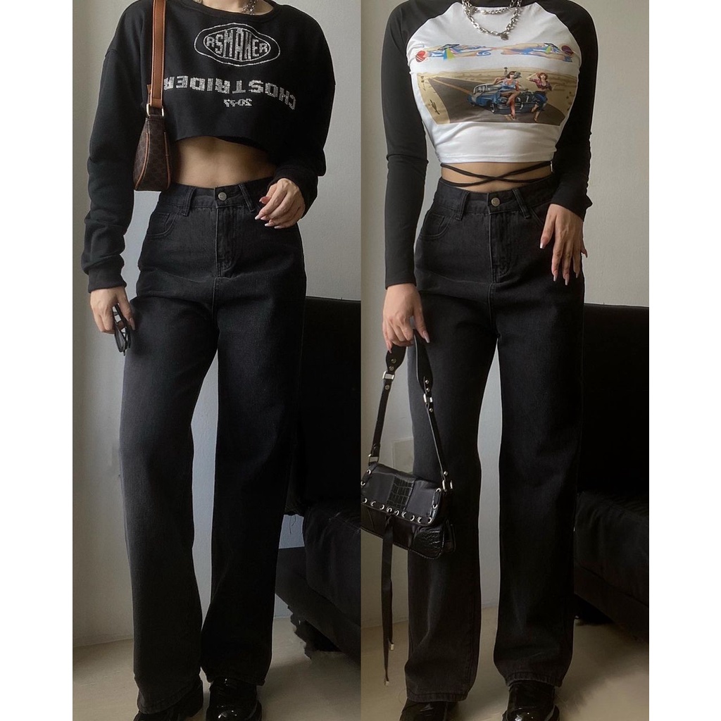 [SOULKKYO] Baggy Ash Black Premium Quality Loose fit Jeans