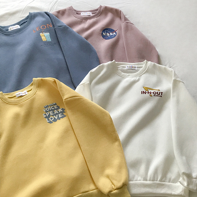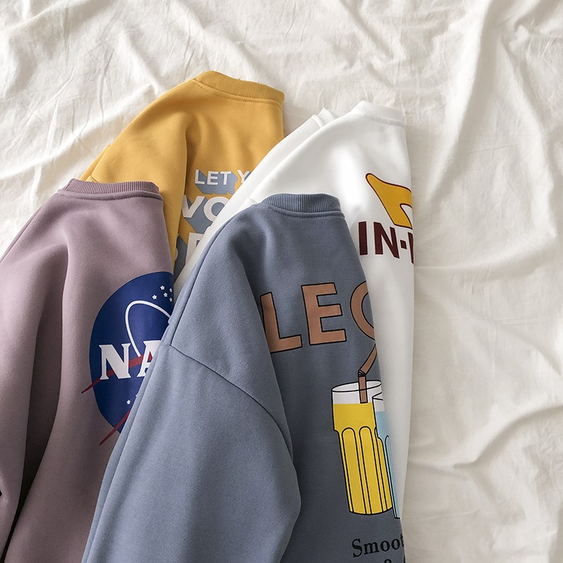 [Local Delivery]Sell Well! Korean Fashion Letter Print Round Neck Long Sleeve Couple Hip Hop Street Jacket Women Casual Plus Velvet Loose Lovely Oversized Sweatshirt