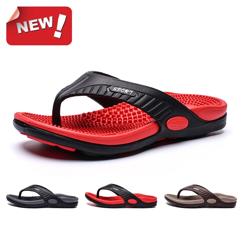 Raya Men Massage Sole Flip Flops Size 40-46 Solid Color Summer Anti Slip Outdoor Beach Slippers Waterproof Bathroom Shoes 707