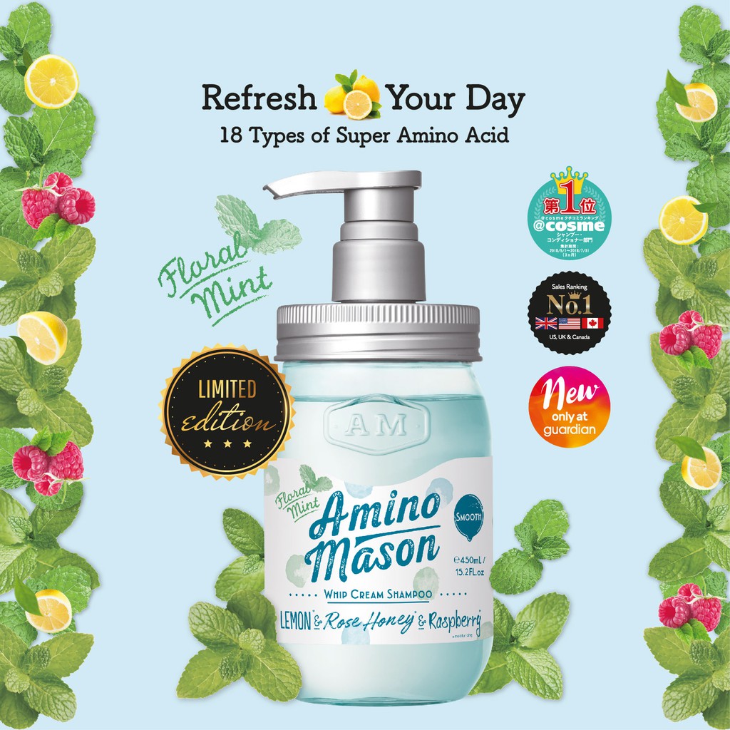 (EXP: 09/2027) Amino Mason Smooth Whip Cream Shampoo - Mint (450ml) Suitable for Oily hair