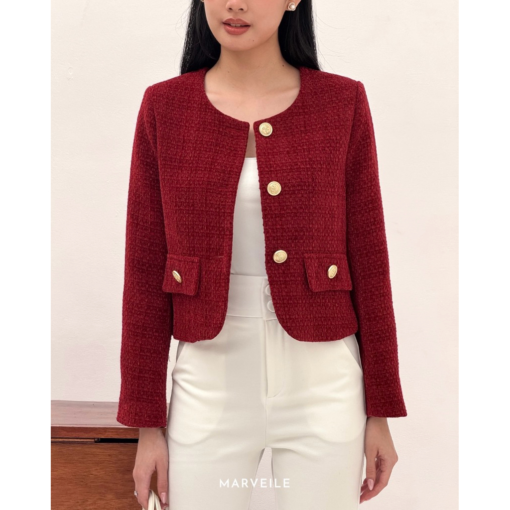 [Marveile] Bryle Tweed Blazer Korean Top Blazer