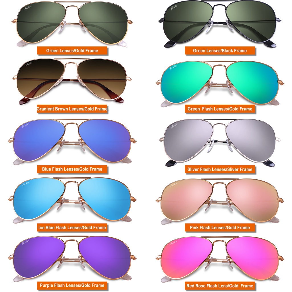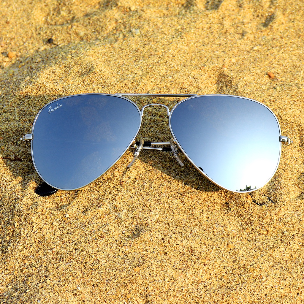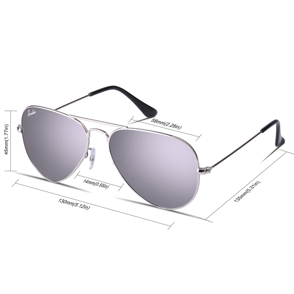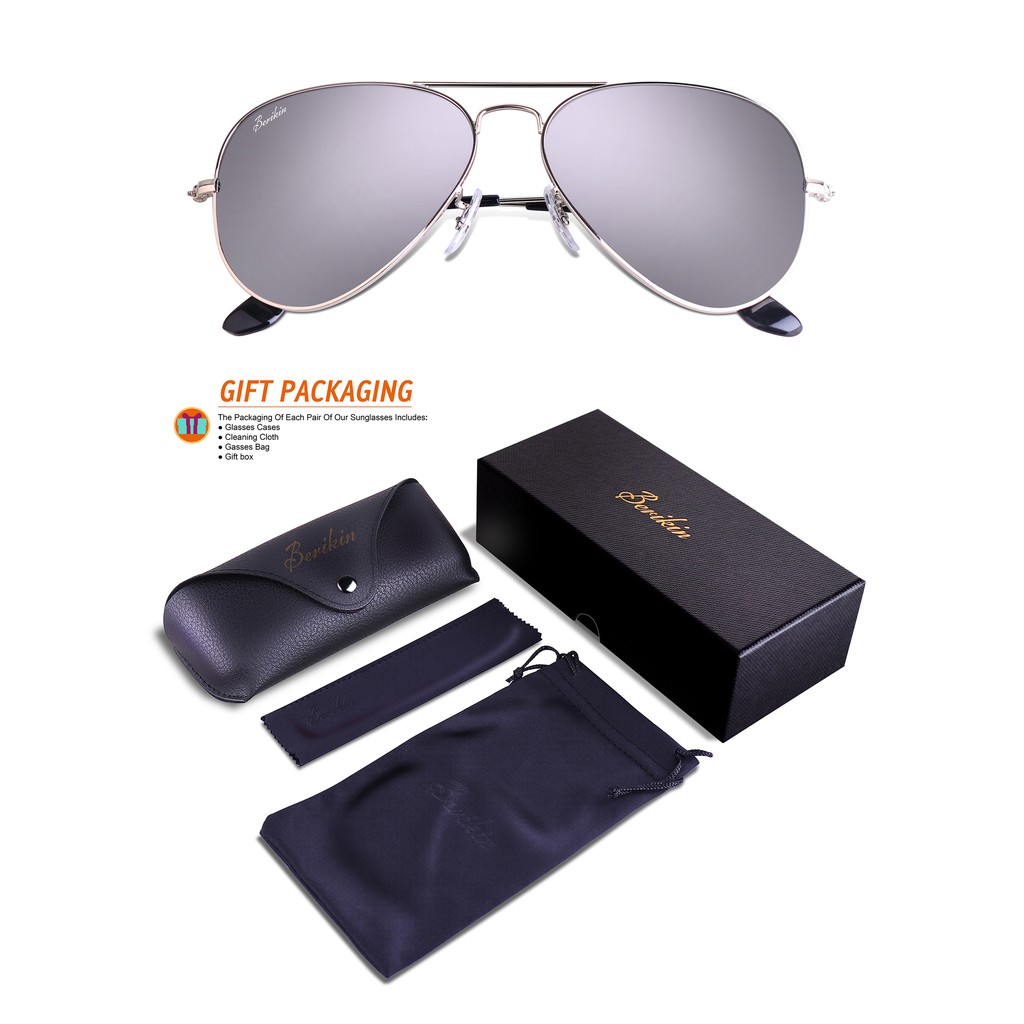 Berikin Classic Aviator Style Mirror Coating Sunglasses For Men Women 100% UV400 Protection Sliver Flash Glass Lenses Sliver Metal Frame 58mm
