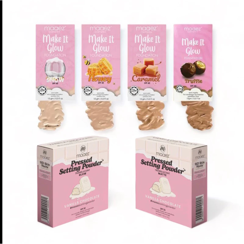 MAAEZ | MAAEZ FOUNDATION 15G FULL COVERAGE | MAAEZ PRESSED POWDER | MAAEZ SERUM FOUNDATION 30G | MAAEZ SETTING POWDER