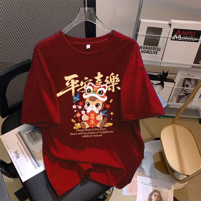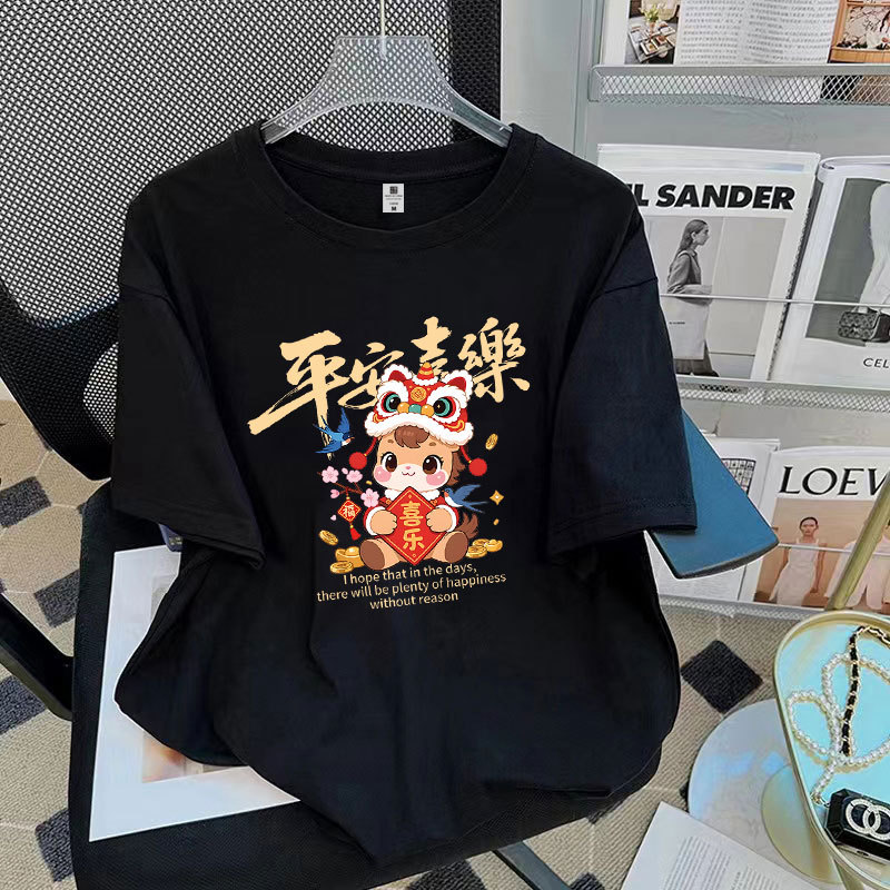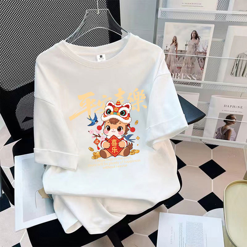 2026 CNY Chinese New Year Cute Horse Women T-shirt Fashion Short Sleeve Tee Shirt Plus Size M-4XL Female Student Clothes Men Loose Unisex 新年衣服马年T恤 春节礼物 Wanit Murah Baggy Baju Perempuan