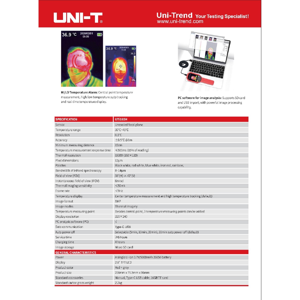 UNI-T UTi165H Infrared Thermal Imager 30 ˚ C ~45 ˚ C Fever Thermometer Thermal Imaging Camera Temperature Detection