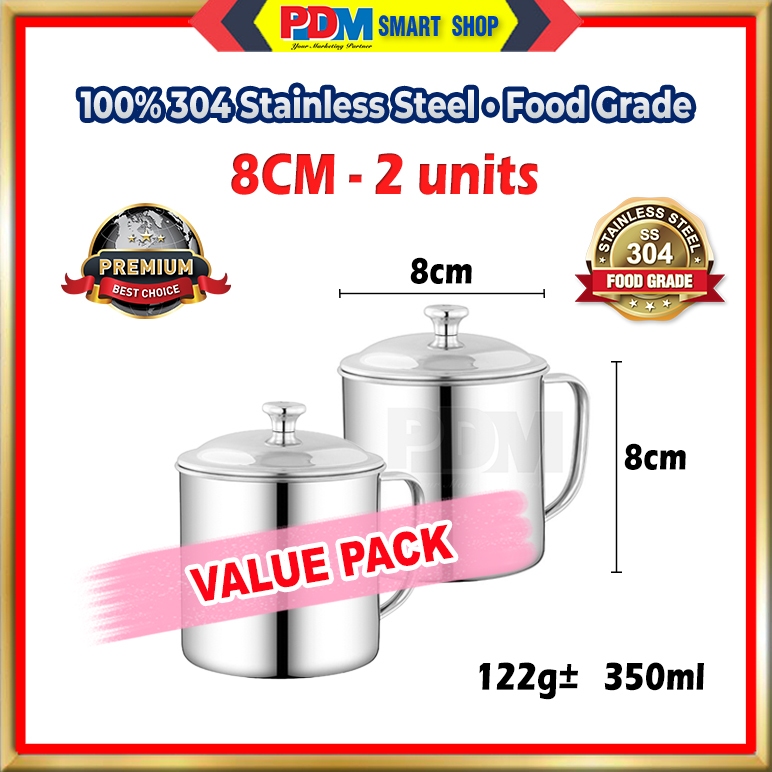 PDM Premium 304 Stainless Steel Mug with Lid 8cm 10cm 12cm 13cm 15cm