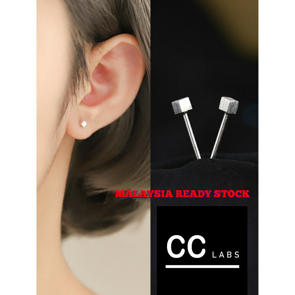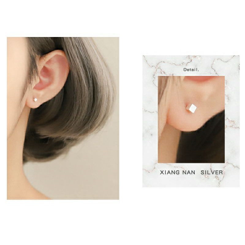 Anting Trendy Silver Square Stud Earrings Earring for Women Student Teen Jewelry Gift