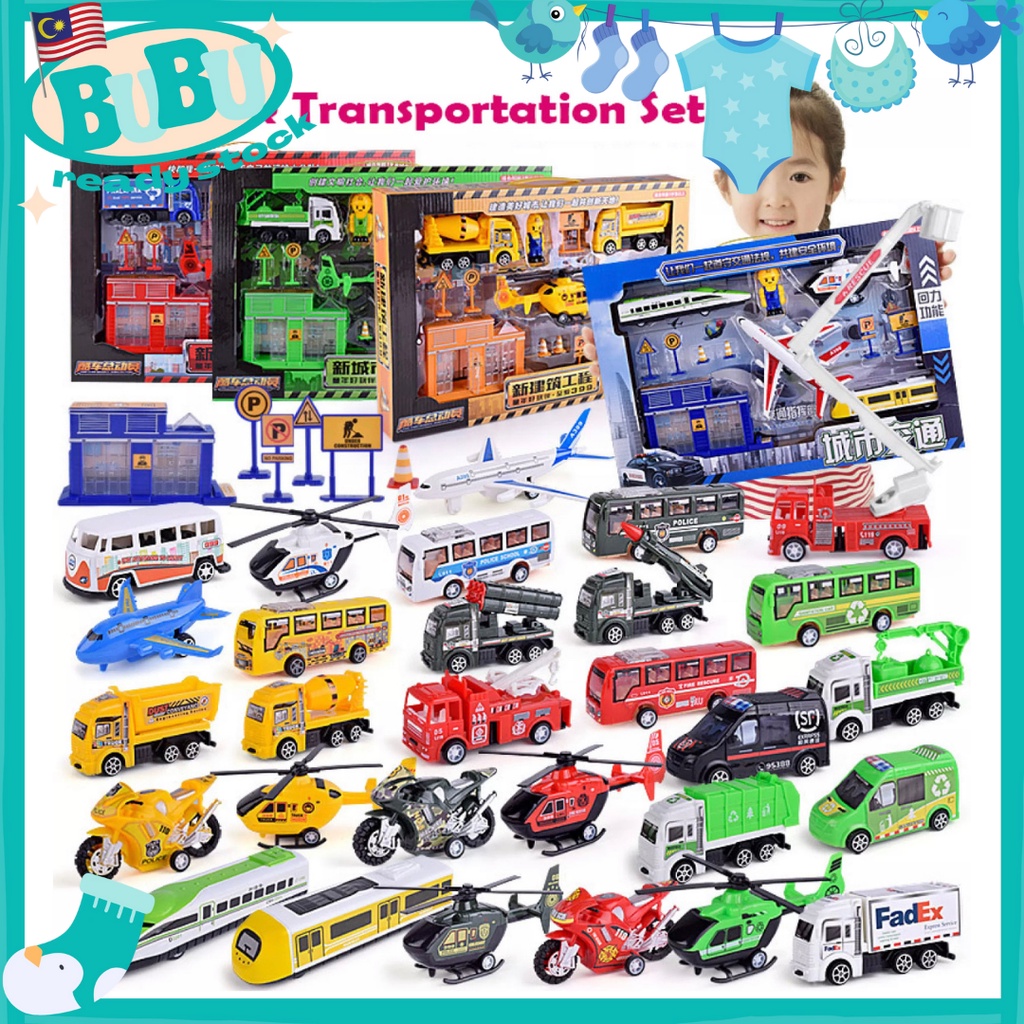BUBU Ready Stock Simulation Toy Set Pull-Back Vehicles Education Mainan Kenderaan Police Bomba Army