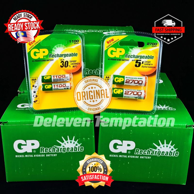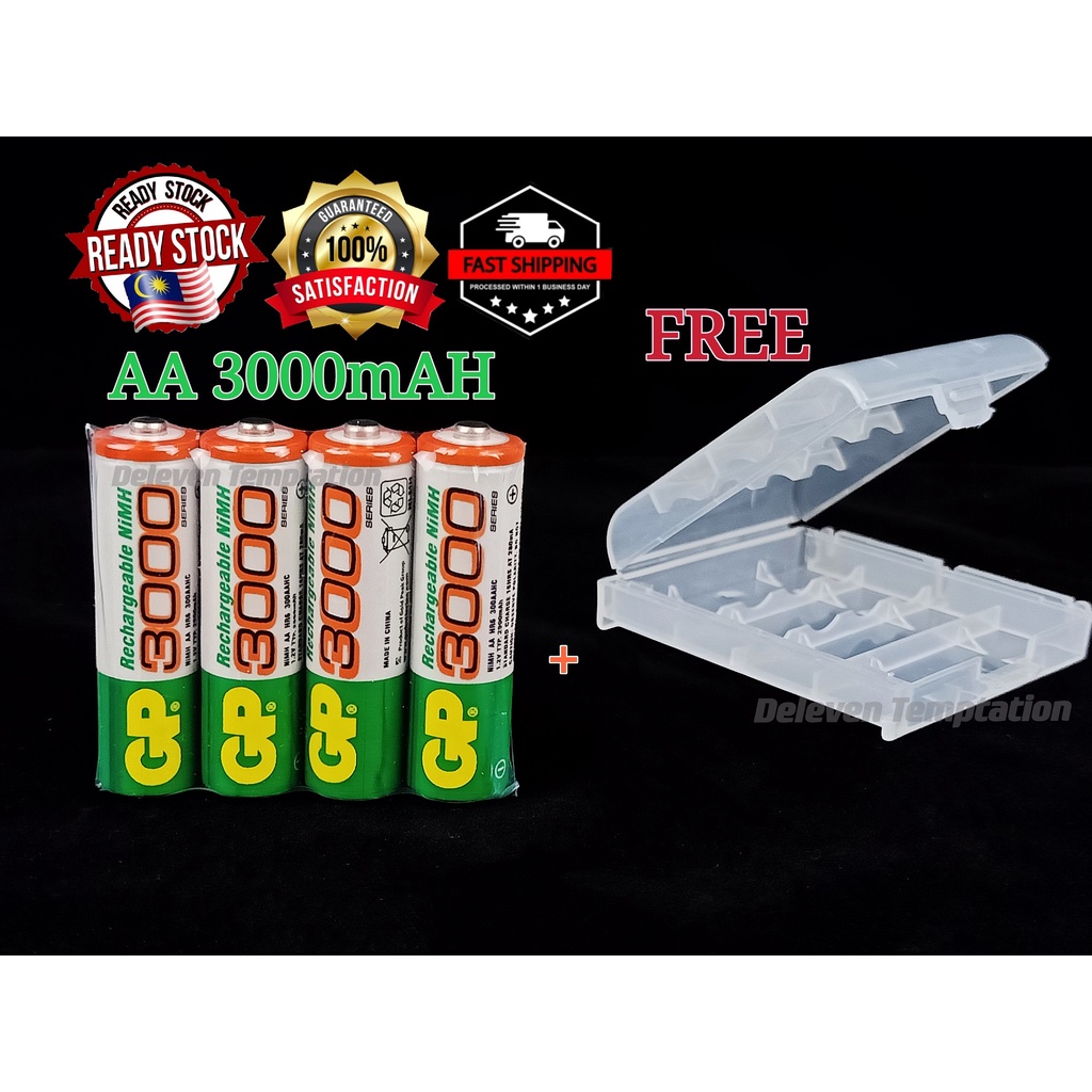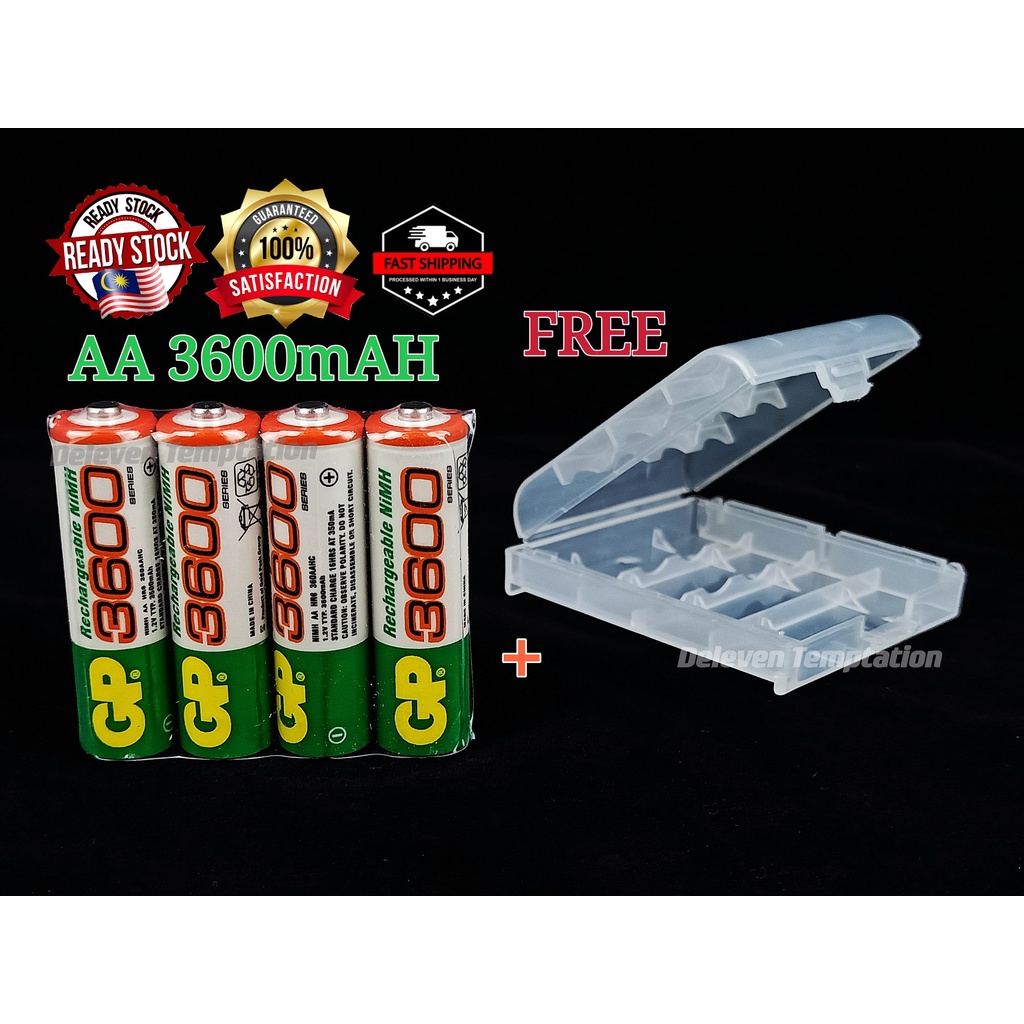 GP AA Rechargeable Battery AAA Fast Charger Free Storage Case Ready Stock 1100mAh 2700mAh 3000mAh 3600mAh