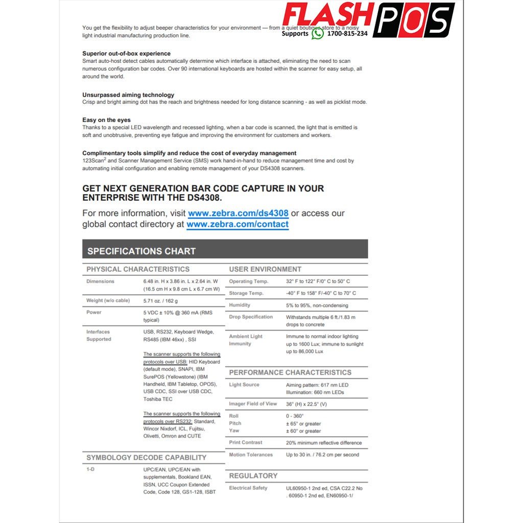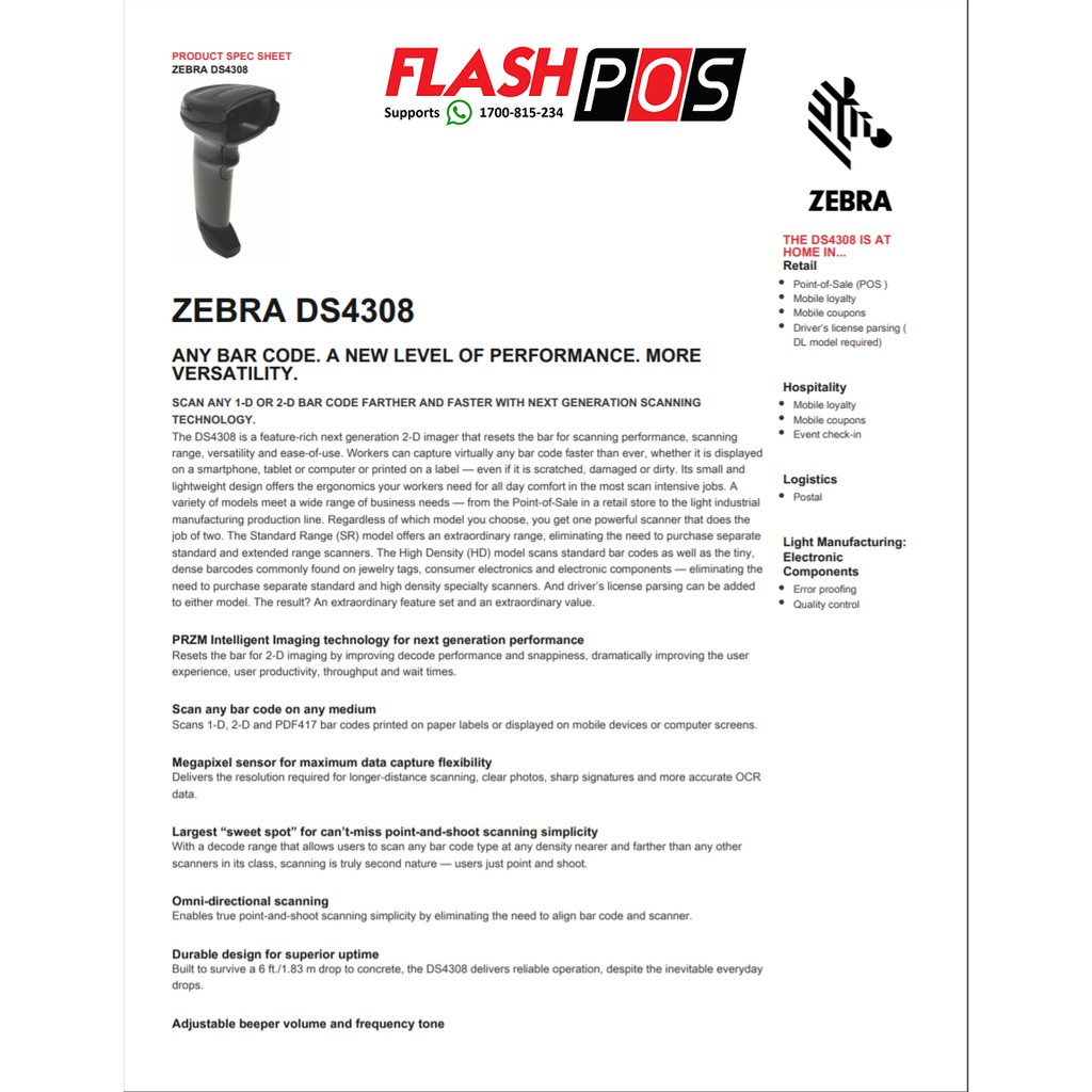 100% Original Zebra DS-4308 Barcode Scanner