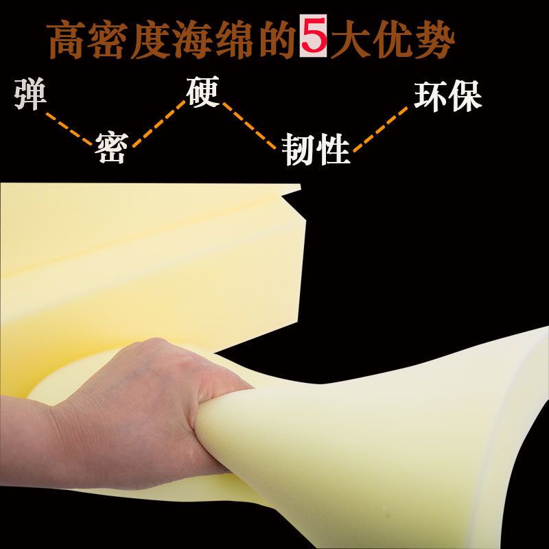 50D高密度实木沙发海绵垫子定制加厚加硬坐垫床垫绵芯飘窗垫订做 50d High-Density Solid Wood Sofa Sponge Cushion Customized Thickened Hardened Cushion Mattress Cotton Core Bay Window Cushion Customized