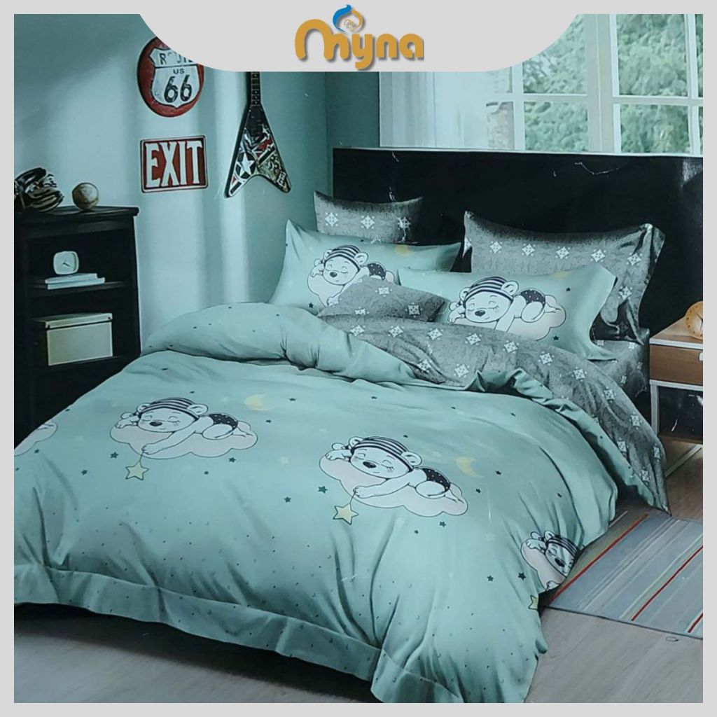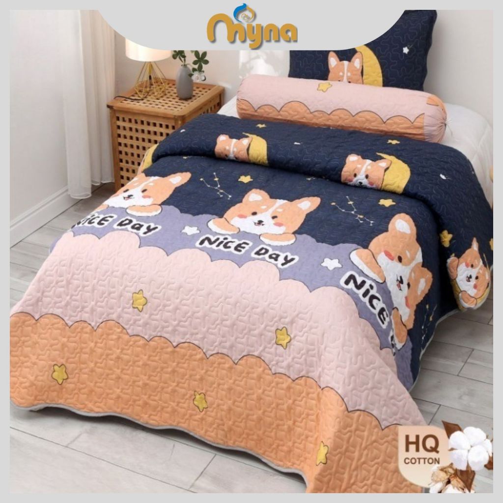 Myna | 3 In 1 Super Single Size Patchwork Sheet Cotton Fitted Bedsheet Sets Pillowcase Cadar 3合1床单