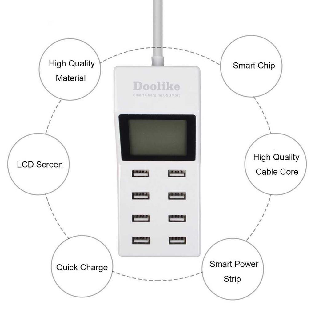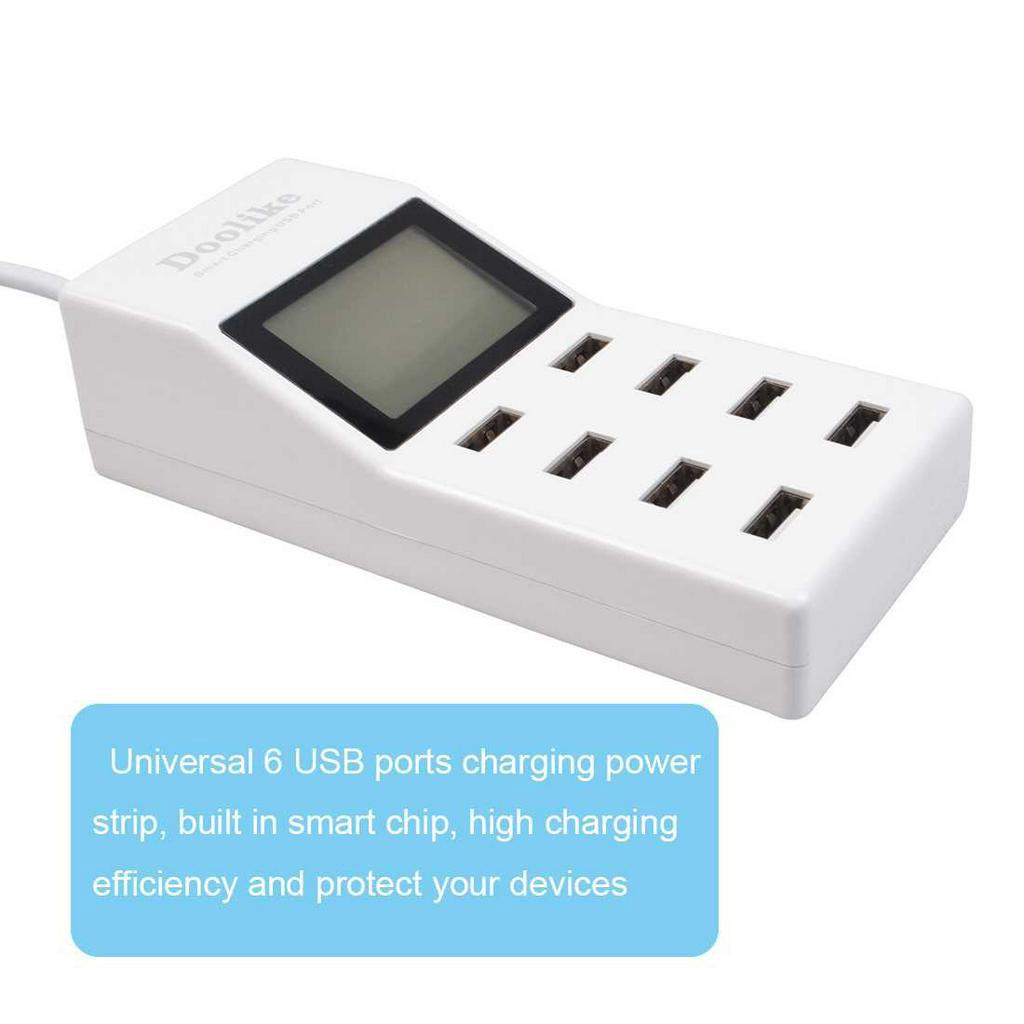 Doolike DL-CH15 Surge Protector 8 USB Ports Smart Power Strip With LCD Screen White (White)