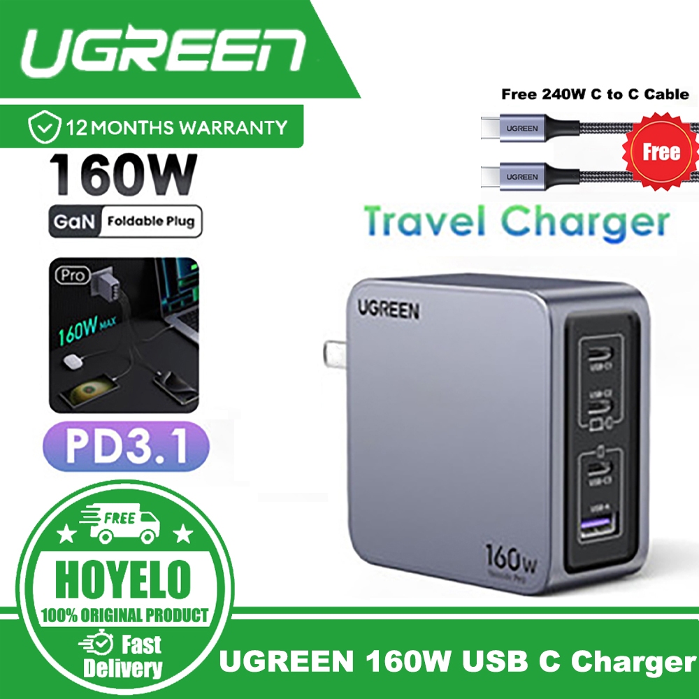 UGREEN 160W USB C Fast Charger 4-Port PD 3.1 GaN Charger Power Adapter With 3 USB C ports