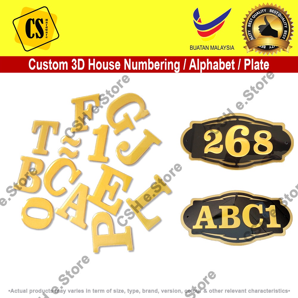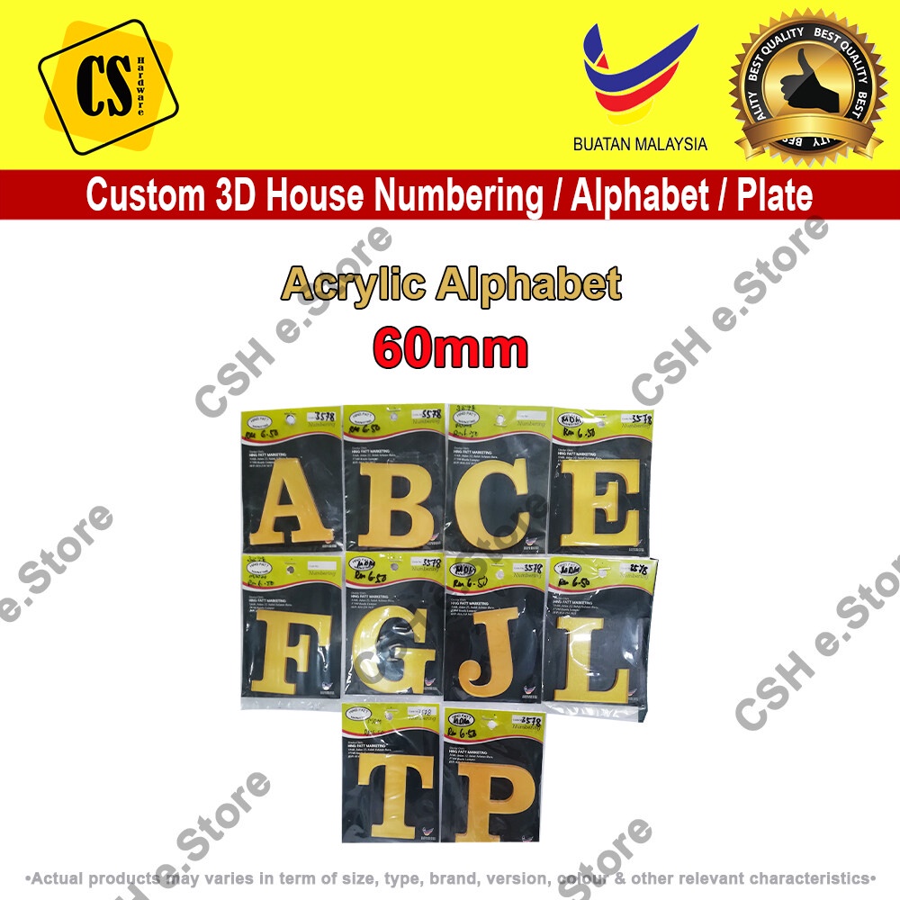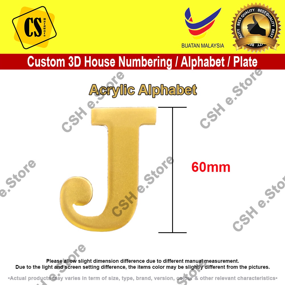 Modern Acrylic Alphabet Metallic Gold Alphabet Letter A-M Acrylic Door Plate Abjad Huruf Emas Rumah Pintu 60mm