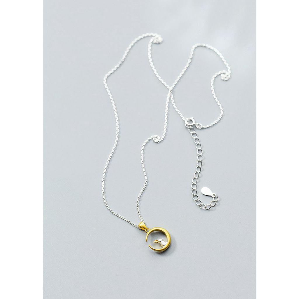 Lè Silber Co.S925 - Rabbit on the Moon Necklace Rantai Leher Perak
