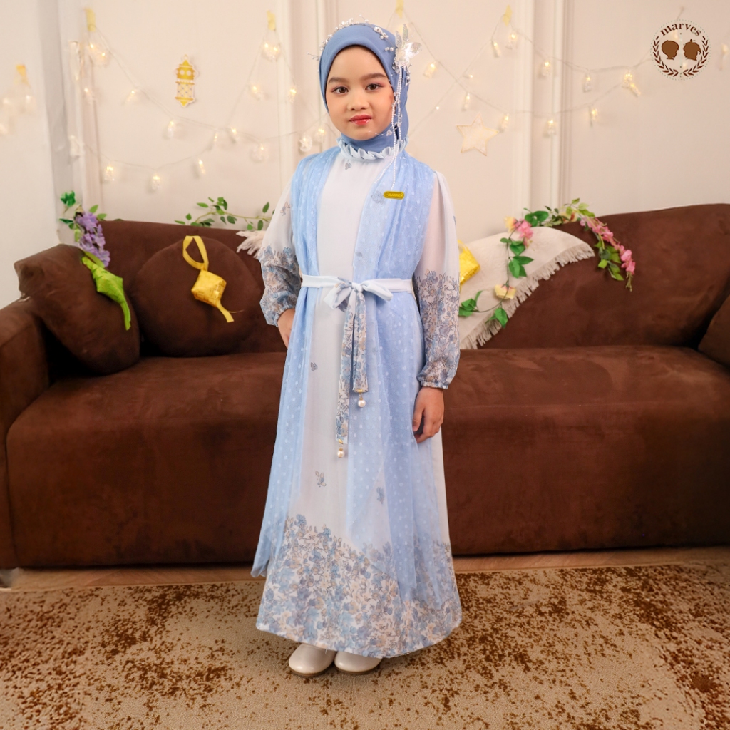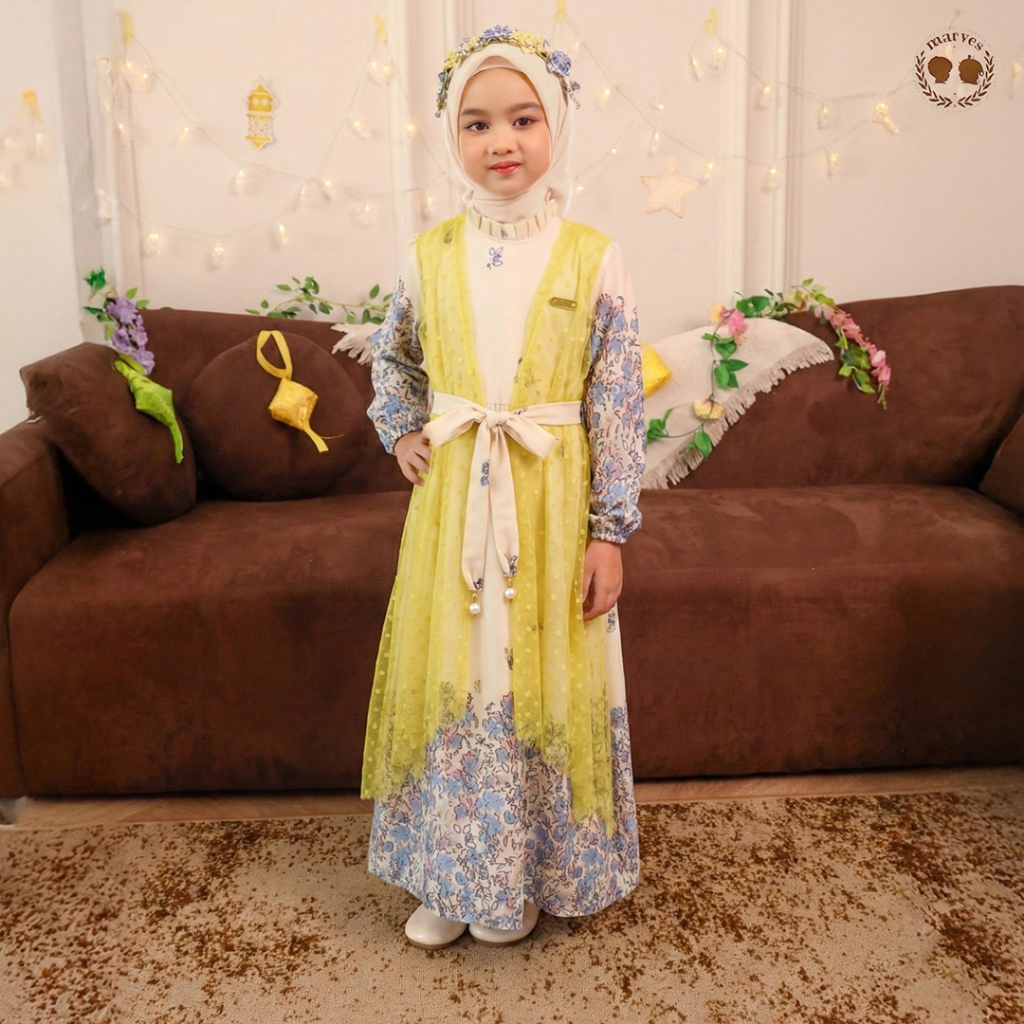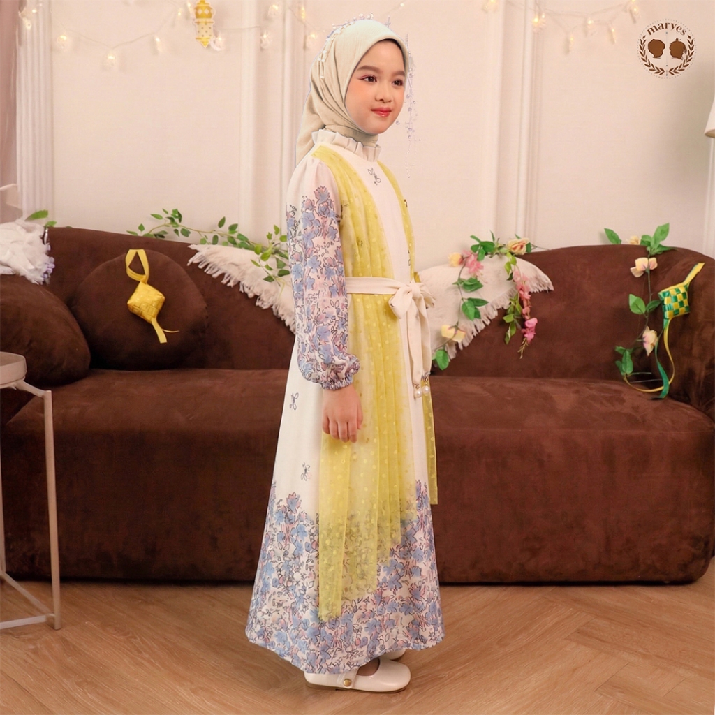 MARVES Dalia Hijab Girls' Gamis Set Made of Ceruty Baby Doll Material Ages 1 to 14 Years